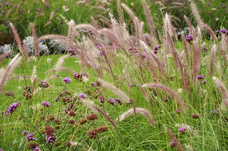 Pennisetum alopecuroides (fountain grass) is a wonderfully tactile deciduous grass, forming a mound of slender foliage and long stems with soft flower plumes that you can't help stroking. It’s not fully hardy, so it is best grown in mild areas or given a thick mulch in autumn to protect it through winter. Cut back old foliage in spring.