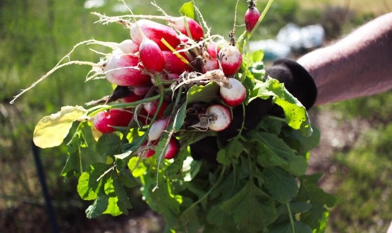 7. Radish, spinach and pak choi