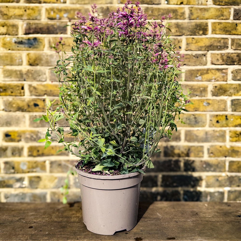 Agastache ‘Rosie Posie’, commonly known as Rosie Posie Hyssop, is a vibrant perennial that adds a splash of colour to any garden with its stunning pink and magenta flower spikes. Blooming from early summer through to autumn, this plant offers a long-lasting display that enlivens borders, containers, and mixed beds. Its compact, bushy growth habit makes it an ideal choice for small gardens or as an accent in larger landscapes. The aromatic, mint-scented foliage adds an additional sensory element, providing fragrance when brushed against or crushed. Agastache ‘Rosie Posie’ pairs beautifully with other sun-loving perennials like Echinacea and Salvia, creating a lively and diverse garden palette. This hardy plant is particularly valued for its resilience and adaptability, thriving in the UK climate while attracting bees and other pollinators, contributing to a healthy garden ecosystem.