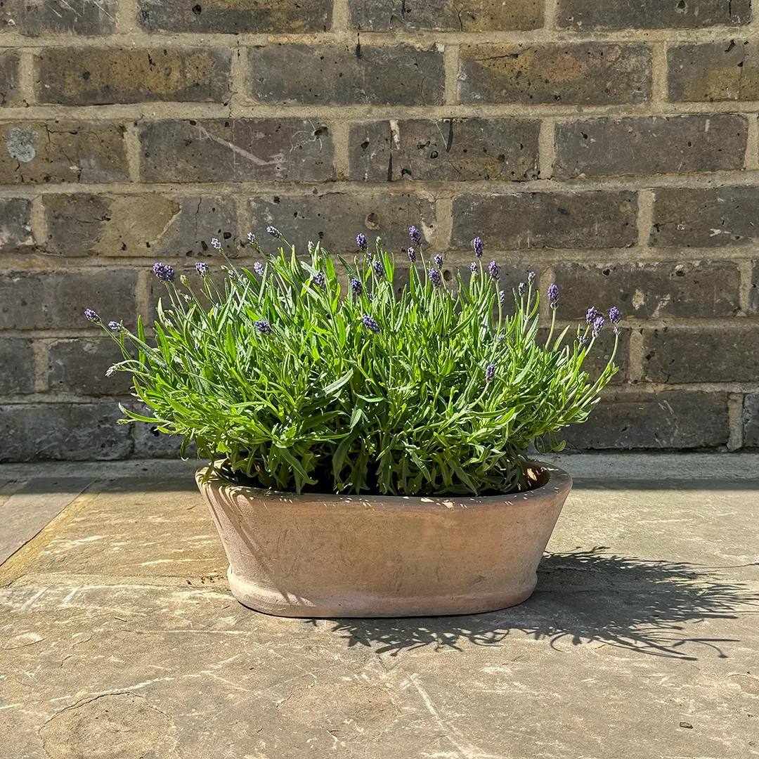 The Handmade Oval Trough Planter Window Box brings rustic elegance to your garden or windowsill with its aged natural terracotta finish. Each piece is uniquely handcrafted, giving every planter its own distinct character and charm. The subtle variations in color and texture add to its authentic aesthetic, ensuring that no two pieces are exactly alike – images are representative.