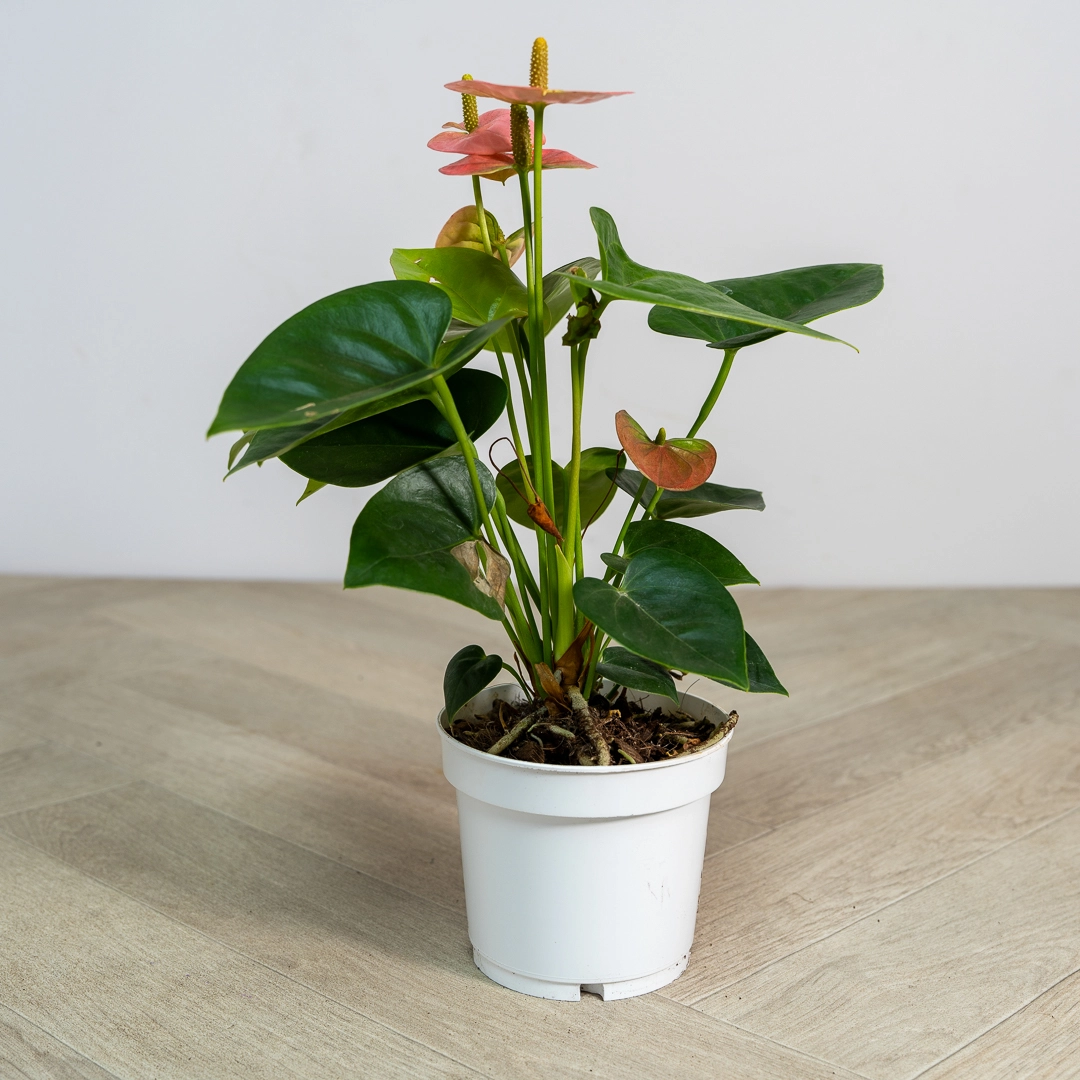 Minimal maintenance is required—trimming away any faded spathes or older leaves keeps it fresh. Pair this Anthurium with other foliage stars like pothos or ferns for a lush, layered look, or showcase it in a standalone decorative pot for an elegant focal point. Let ‘Spirit Champion’ bring a touch of tropical refinement and gentle vitality to your home or office.