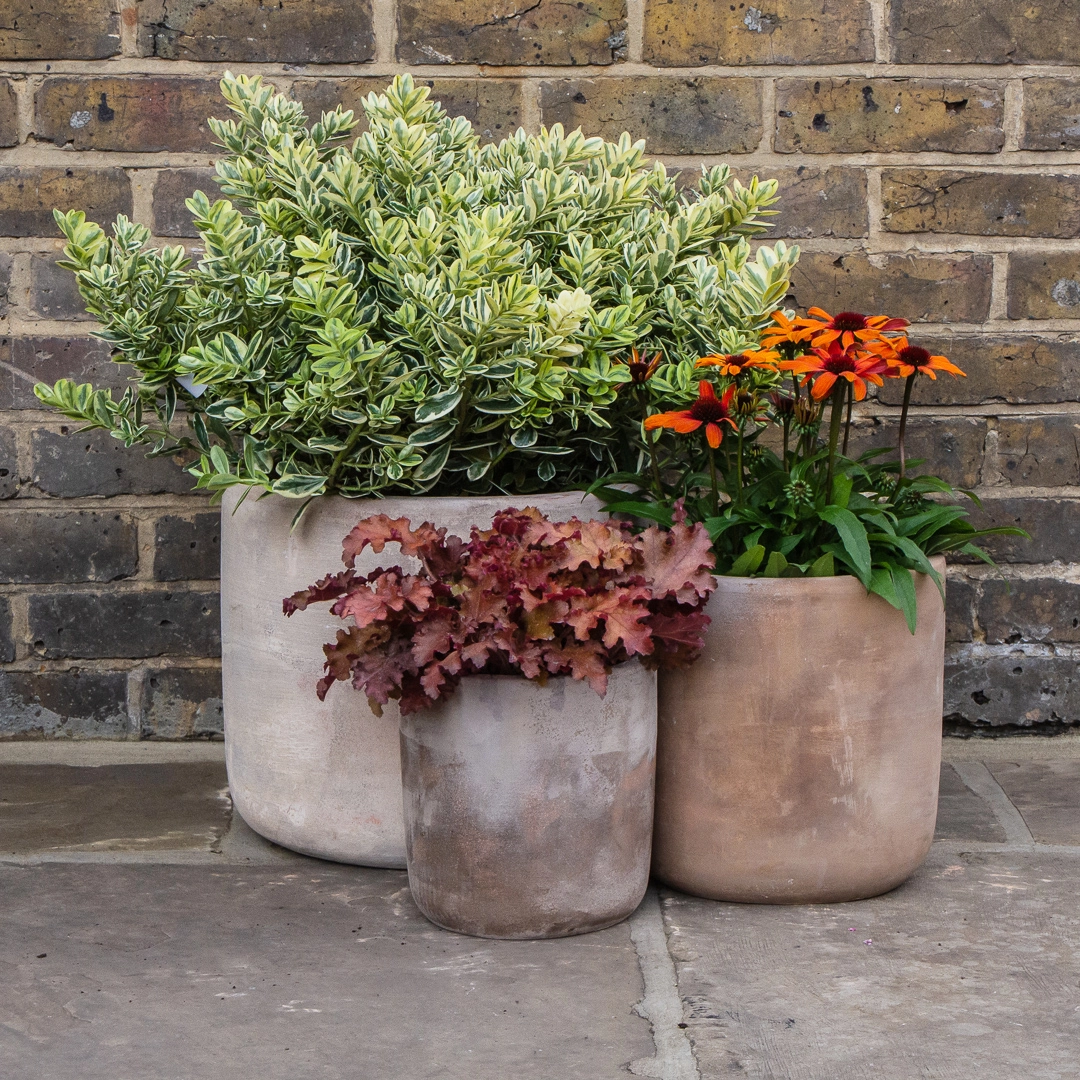 The Antique Handmade Cairo Cylinder Stone Planter embodies a blend of natural charm and practical design, ideal for enhancing any garden or balcony space. Crafted from robust terracotta with a rustic finish, each planter offers a unique, handmade quality that ensures no two are exactly alike. Its cylindrical form is perfectly suited for nurturing small shrubs, perennials, and seasonal bedding plants, providing ample space for root growth. The planter is equipped with an extra-large drainage hole to facilitate proper water management, crucial for thriving plant life. Additionally, its frost and UV resistance make it a durable choice for the unpredictable UK weather, promising year-round beauty and utility in your outdoor living areas.
