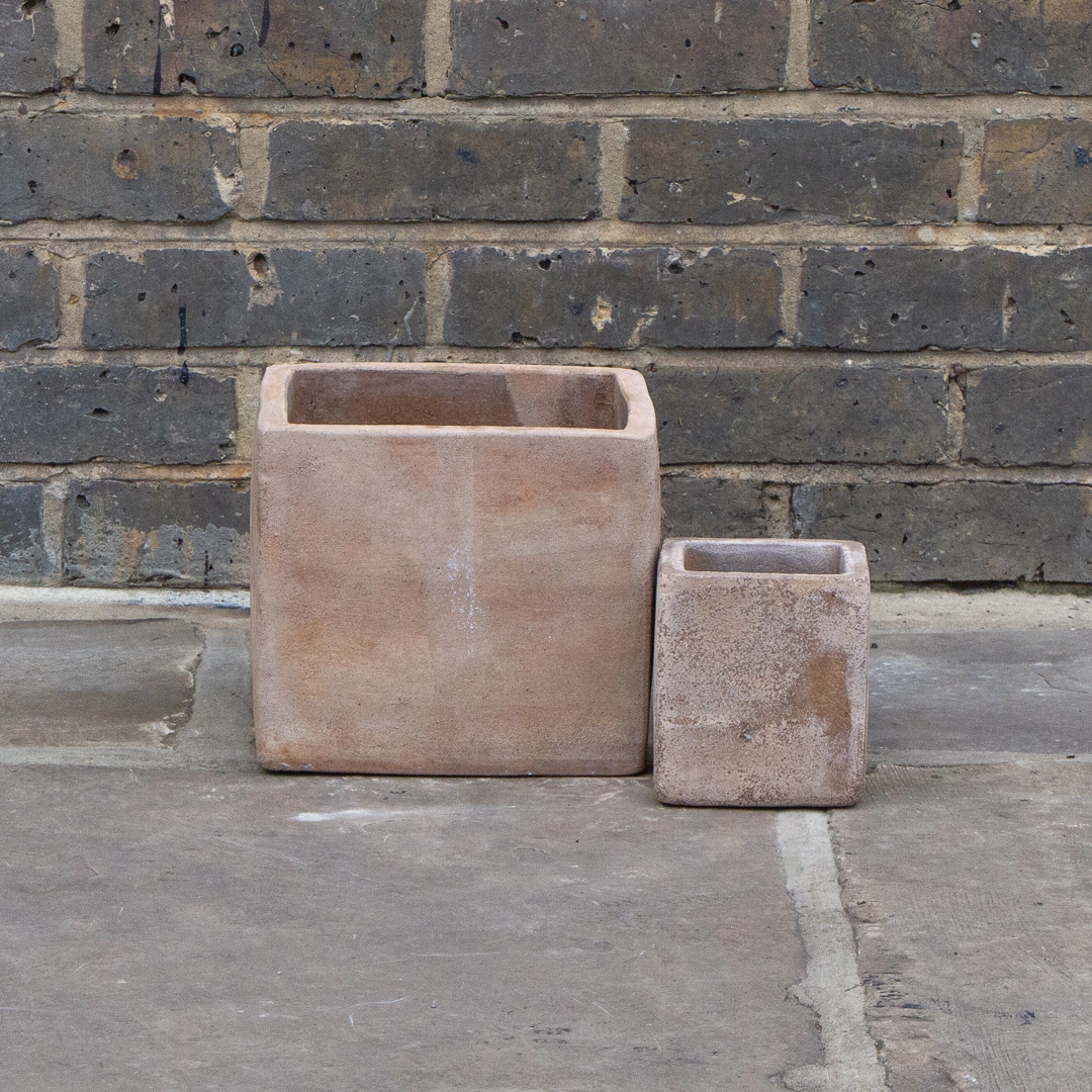 - Handmade antique-sand terracotta cube stone planter