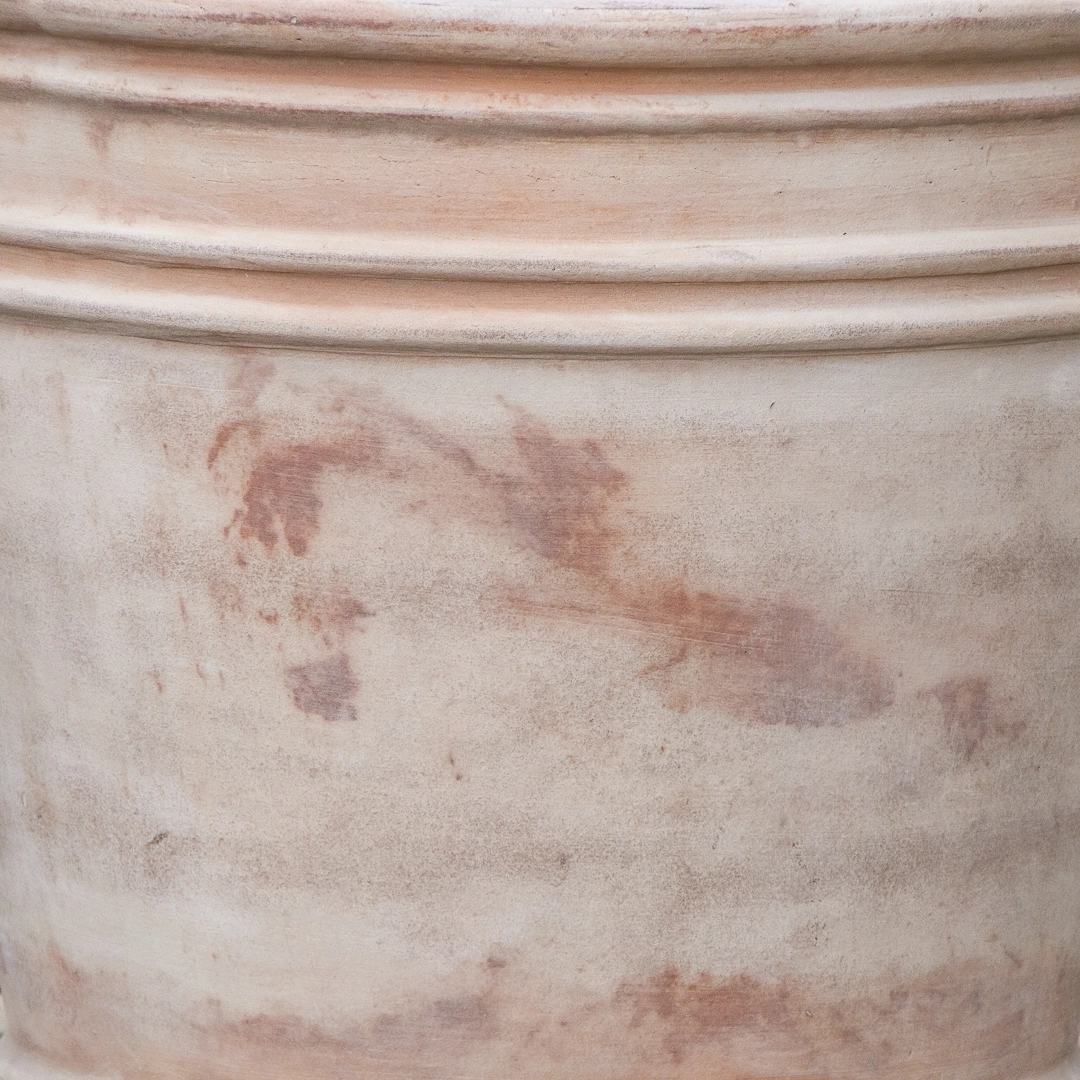 Elevate your garden setting with the Antique Sand Triple Rim Stone Planter, a striking terracotta plant pot that combines robust functionality with decorative flair. This planter is distinguished by its triple-rimmed design, which adds a sophisticated touch to the classic cylindrical shape. Perfect for cultivating small shrubs, perennials, and bedding plants, it accommodates various plant types with ease. The terracotta material is kiln-fired to ensure frost and UV resistance, making it suitable for all weather conditions. An extra-large drainage hole at the base enhances water management, crucial for healthy plant growth. Each planter is handmade, showcasing unique variations in finish and size that highlight its artisanal quality.