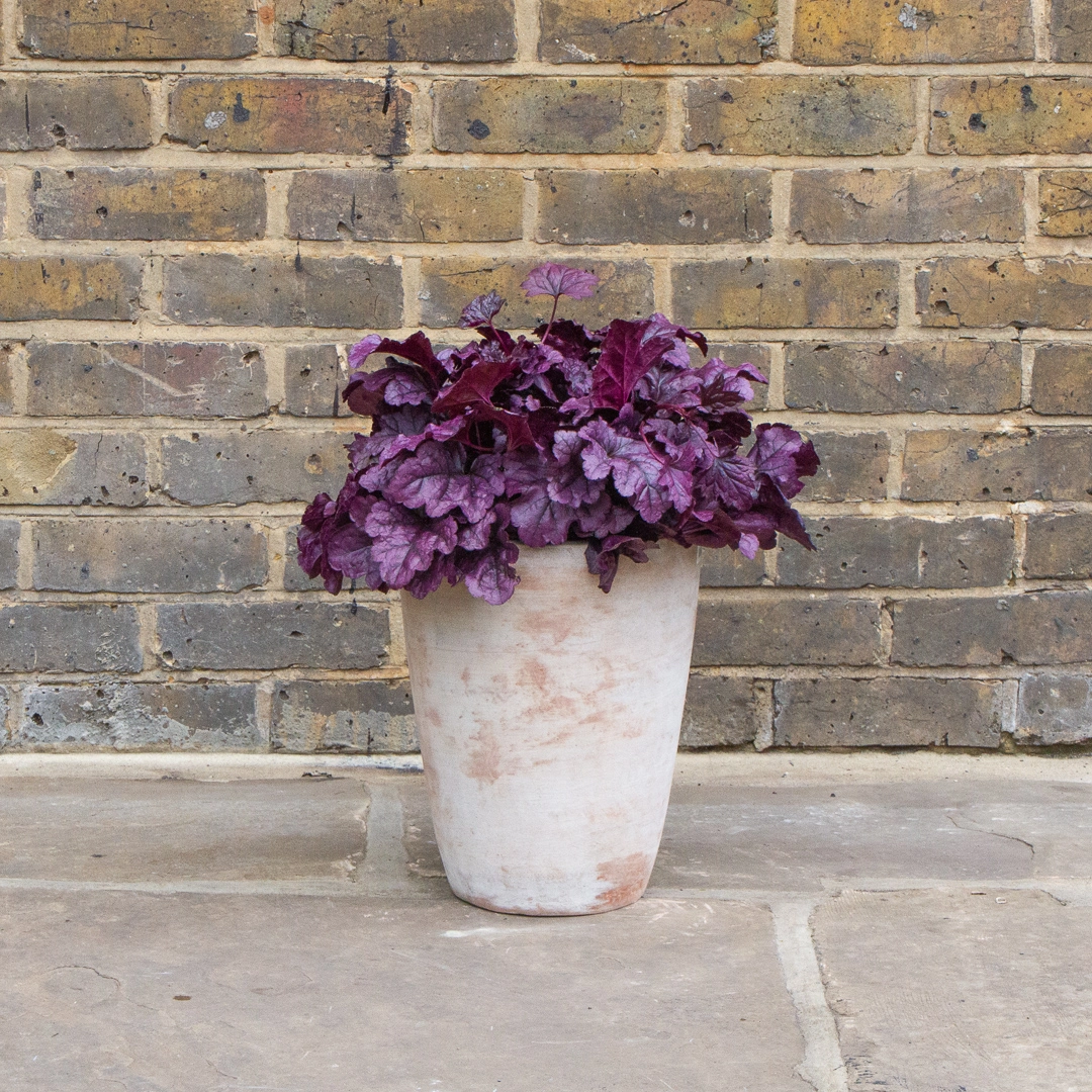 Introduce a touch of timeless elegance to your garden or patio with the Antique Sand Vase Stone Planter. Expertly crafted from kiln-fired terracotta, this planter boasts a unique conical shape that tapers gracefully from top to bottom, complementing both traditional and contemporary outdoor spaces. Its aged stone finish exudes a classic charm that enhances any planting arrangement, from vibrant flowers to lush greenery. UV and frost resistance ensure durability throughout the seasons, while a functional drainage hole supports healthy plant growth by preventing water accumulation. Ideal for London's diverse weather, this planter is a perfect choice for garden enthusiasts looking to blend functionality with aesthetic appeal.