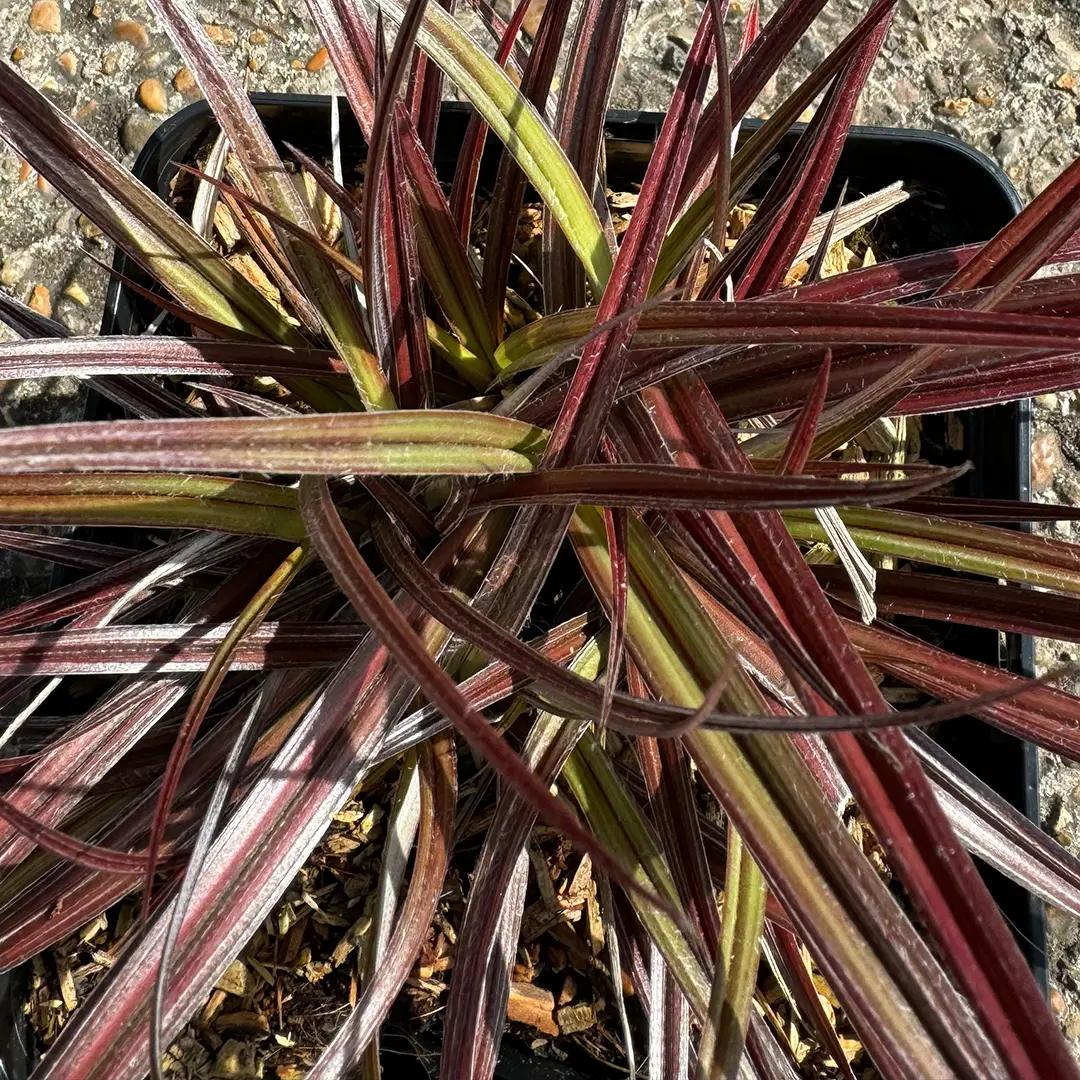 Astelia nervosa 'Red Devil' is an eye-catching evergreen perennial that brings a bold splash of colour to your garden. Its striking, sword-like leaves emerge in a vivid red, gradually maturing to a deep, rich burgundy. This compact, clump-forming plant is perfect for adding year-round interest to borders, rockeries, and containers. 'Red Devil' pairs beautifully with other foliage plants like Heuchera and contrasting green shrubs such as Buxus. Its unique colour and texture make it a standout feature in any garden design, providing a dramatic focal point and enhancing mixed plantings with its vibrant hues.