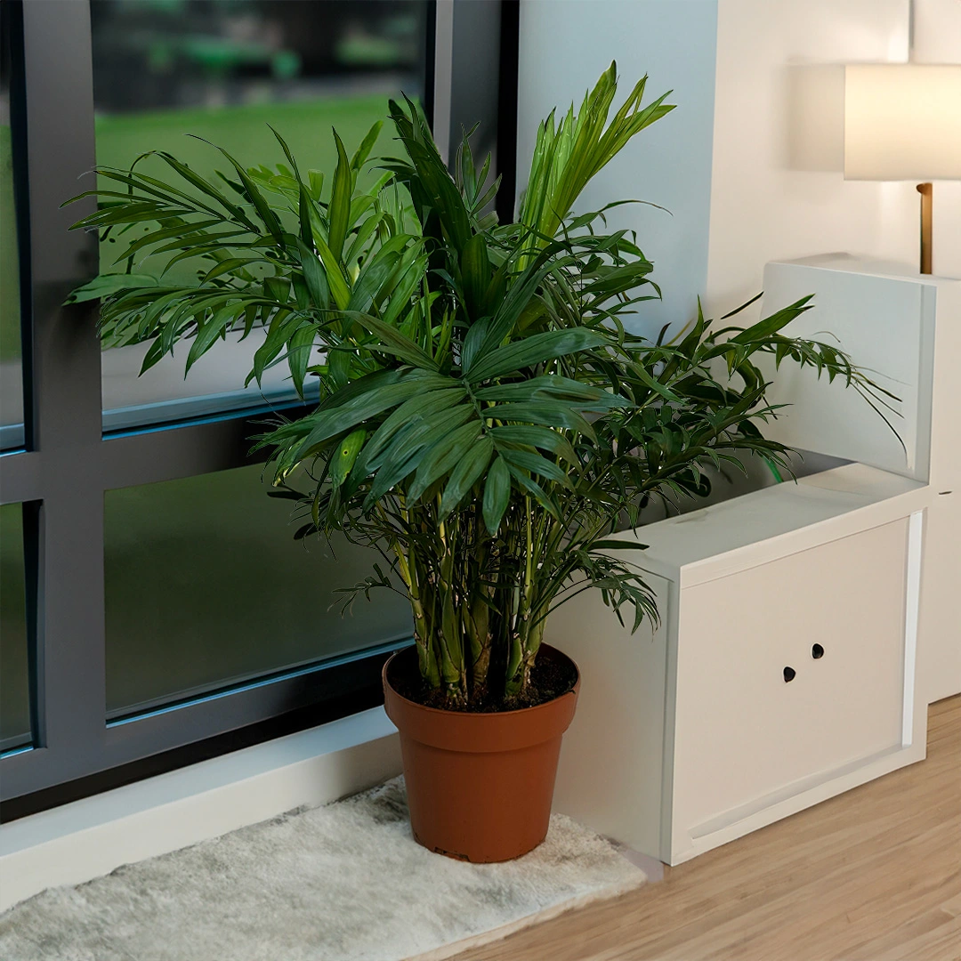 The Parlour Palm is particularly prized for its ability to thrive in low light conditions, making it an ideal plant for areas of the home or office that don't receive a lot of natural sunlight. Its lush, green fronds bring a touch of the tropics indoors, and it fits beautifully into a variety of decor styles, from modern to traditional. It can be paired with other shade-loving plants like ferns or peace lilies to create a serene green corner in any room.