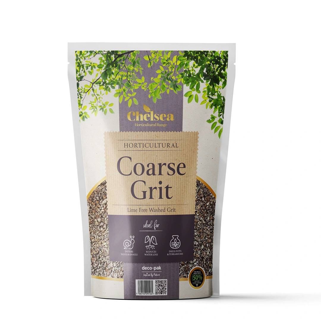 Chelsea Horticultural Coarse Grit is a versatile must-have for indoor gardening and small-scale horticultural projects. With its natural grey and pink tones, it enhances the look of potted plants while improving soil structure and drainage. This grit prevents waterlogging, supports healthy root development, and keeps slugs and snails at bay without the need for chemicals. It also helps suppress weeds, reducing maintenance and keeping pots tidy. Packaged in eco-friendly, easy-to-handle pouches, this coarse grit is perfect for houseplants, alpines, and container gardening.