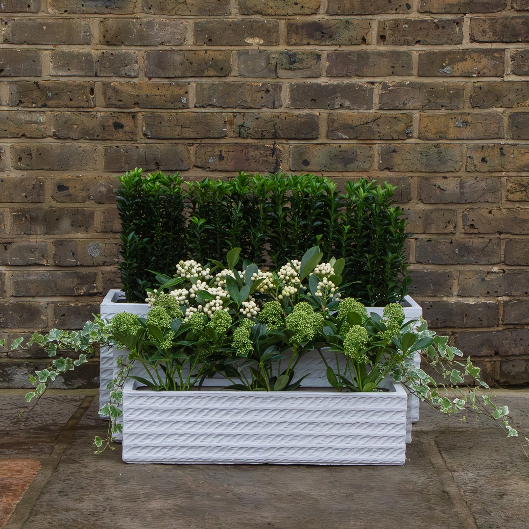 Buy Corda Trough White (W74cm x H27cm x D27cm) Fibreclay Outdoor Trough Planter at The Boma Garden Centre in Kentish Town, London. Visit our garden centre in London and check our wide range of plants & gardening products. We also offer many other products in our webshop. We look forward to seeing you soon!