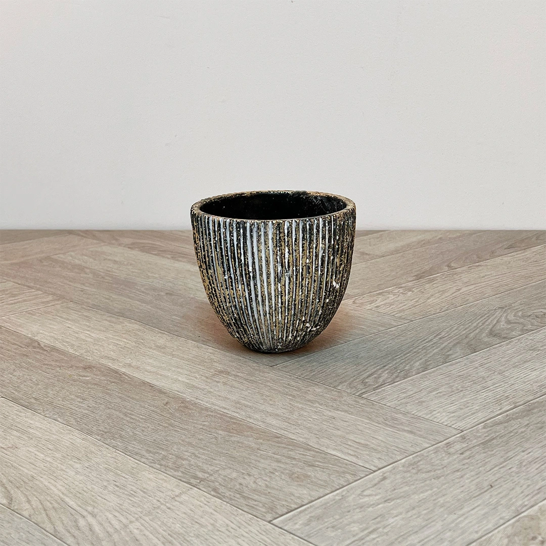 Hand-painted with meticulous attention to detail, this ceramic plant pot exudes an organic appeal. The rough texture paired with the clean, shiny gold finish mimics the dynamic contrasts found in nature. Every pot is a testament to our craftspeople's devotion to quality and artistry.
