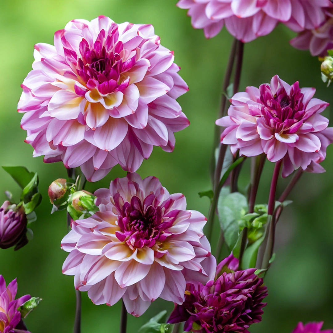 Dahlia 'Muchacha' is a captivating perennial that showcases elegant mauve blooms, each adorned with a deep purple heart and buds. This sophisticated colour palette adds a touch of charm and beauty to your garden from summer through to autumn. Its upright, bushy growth habit makes 'Muchacha' ideal for borders, containers, and cutting gardens, providing a spectacular visual display. These stunning flowers are perfect for cut arrangements, bringing their unique beauty indoors. 'Muchacha' Dahlias are known to attract bees and butterflies, enhancing the ecological health and vibrancy of your garden. Pair them with other perennials and ornamental grasses for a dynamic and eye-catching planting scheme.