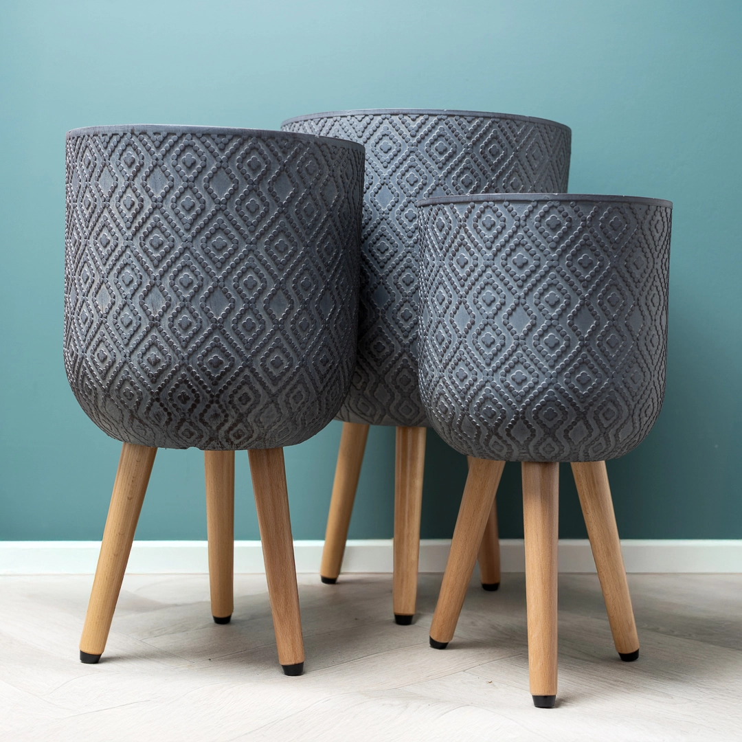 Suitable for a wide range of indoor plants, the Diamond Grey Pot on Legs is an ideal choice for adding a touch of contemporary charm to living rooms, bedrooms, or office spaces. With its stylish design and practical features, it seamlessly blends with any decor, bringing life and elegance to your surroundings.
