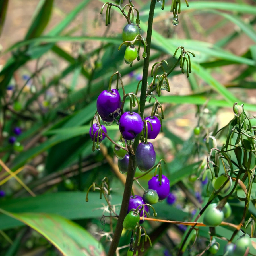 Dianella Tasmanica 'Wyeena' is easy to care for, thriving in a range of light conditions from full sun to part shade. It prefers well-drained soil and, once established, is drought-resistant, requiring minimal watering. This variety benefits from occasional trimming to remove old foliage and spent flower stalks, encouraging healthy growth and maintaining its neat appearance. 'Wyeena' is generally pest and disease-free, making it a fuss-free choice for gardeners of all levels of experience.