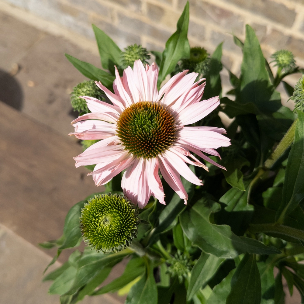 Echinacea ‘Sunseekers Blush’, commonly known as Sunseekers Blush Coneflower, is a stunning perennial that adds a delicate touch of color to the garden with its soft blush pink petals and prominent central cone. Flowering from midsummer through autumn, this variety provides a long-lasting display that enlivens borders, mixed beds, and prairie-style plantings. The upright, clump-forming growth habit of Echinacea ‘Sunseekers Blush’ offers excellent structural interest, making it a standout addition to any garden. It pairs beautifully with ornamental grasses and other late-season perennials such as Coreopsis and Gaura, creating a dynamic and lively garden scene. This hardy and resilient plant thrives in the UK climate and is known for attracting bees, butterflies, and other pollinators, enhancing the biodiversity of your garden.