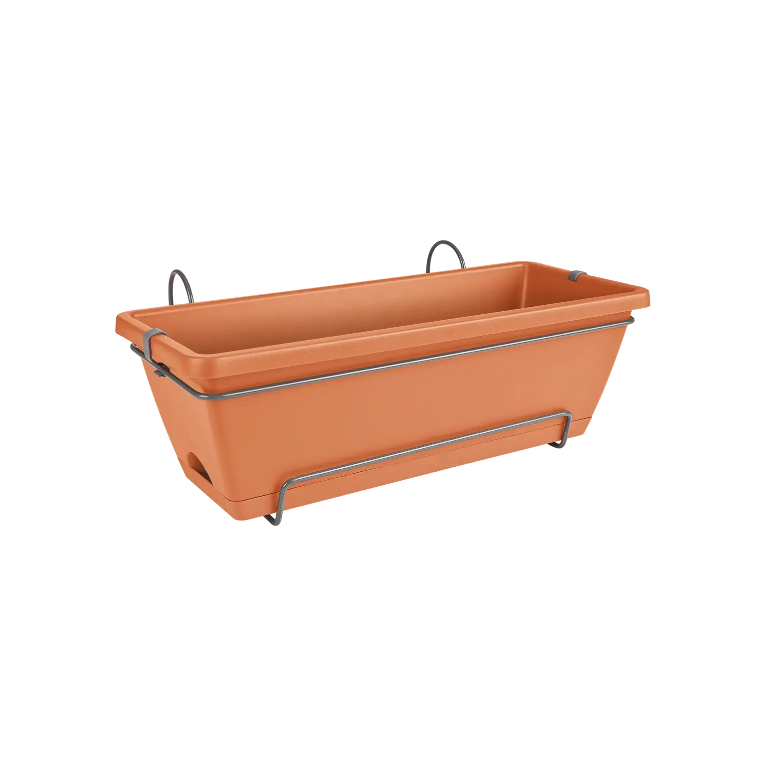 Complete set: planter, saucer & metal railing rack