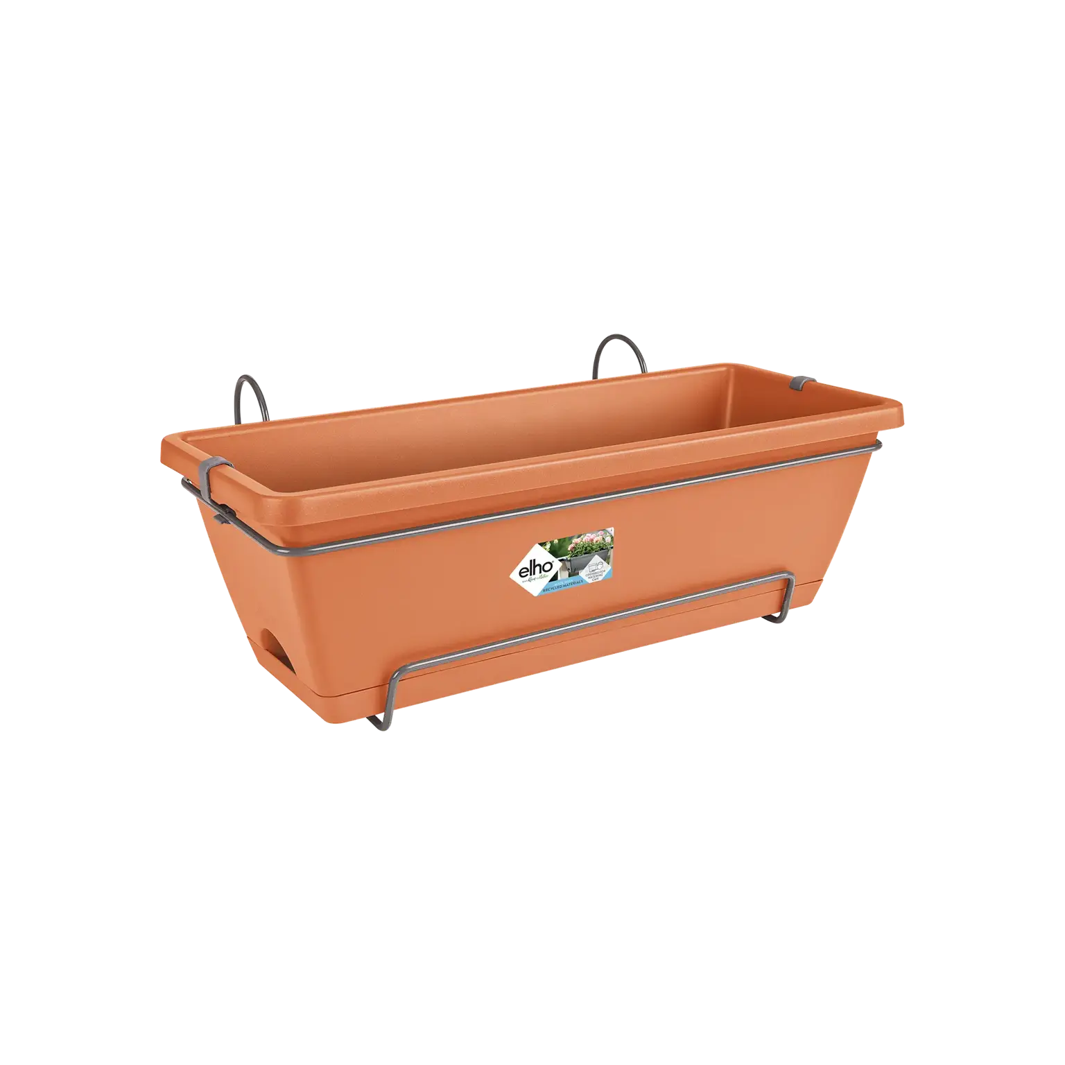 Transform your balcony into a modern green oasis with the Elho Barcelona All-in-1 Balcony Planter in Terra. This bold, contemporary planter comes ready to hang, with everything you need in one eco-friendly package. The set includes the planter, an integrated saucer, and a sturdy metal hanging rack that fits securely on most railings up to 6.5cm wide.