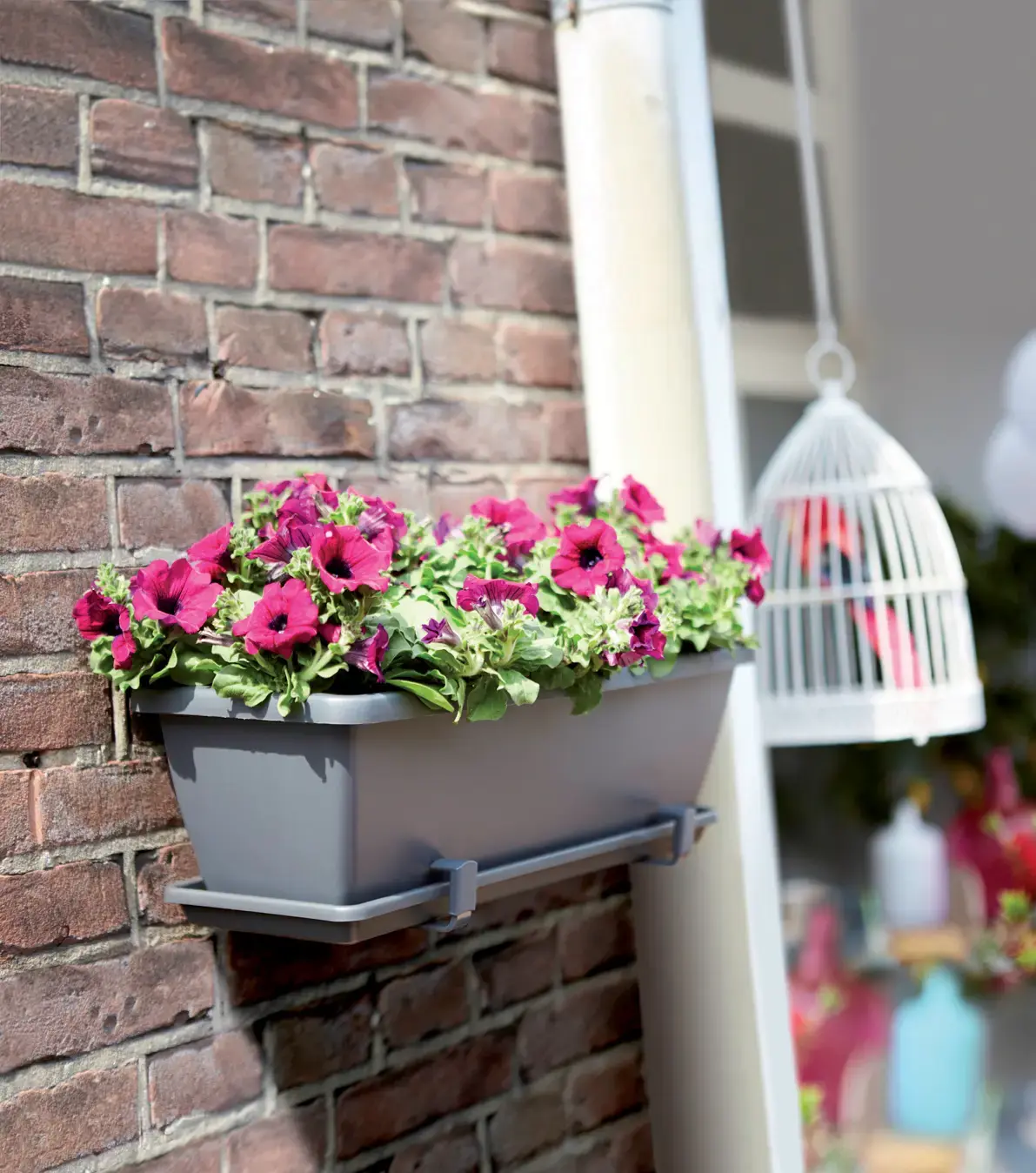 To keep your Elho Barcelona Trough Planter looking its best, wipe it clean with a damp cloth as needed. Ensure the integrated saucer and overflow pipe remain clear of blockages. Refill the saucer using the side spout during dry spells to maintain consistent soil moisture. If you’re using the planter freestanding rather than on a railing, pair it with the matching saucer to prevent water stains on surfaces. Store indoors during extreme frost to prolong its life.