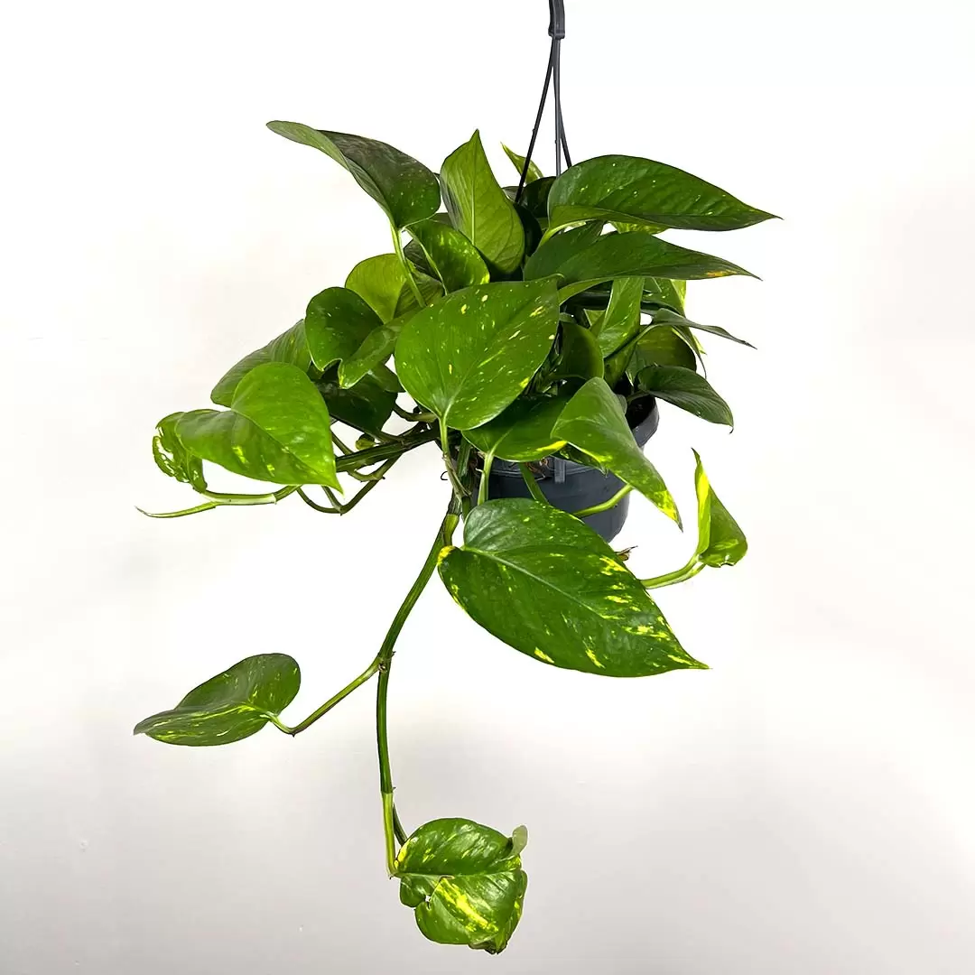 Epipremnum aureum, commonly called 'Devil's Ivy' is a great hanging plant for practically any spot in the house. Be it warm, cool, light or shady, Epipremnum will look radiant as ever. Golden pothos can tolerate lower light levels but is happiest in a bright room with indirect light, growing like wildfire if light, water and nutrient levels are sufficient. As it is a trailing plant, you can train it to grow any way you wish– around a moss pole, up a wall (with support), along the surface of a large pot. Epipremnum aureum is a very versatile plant.