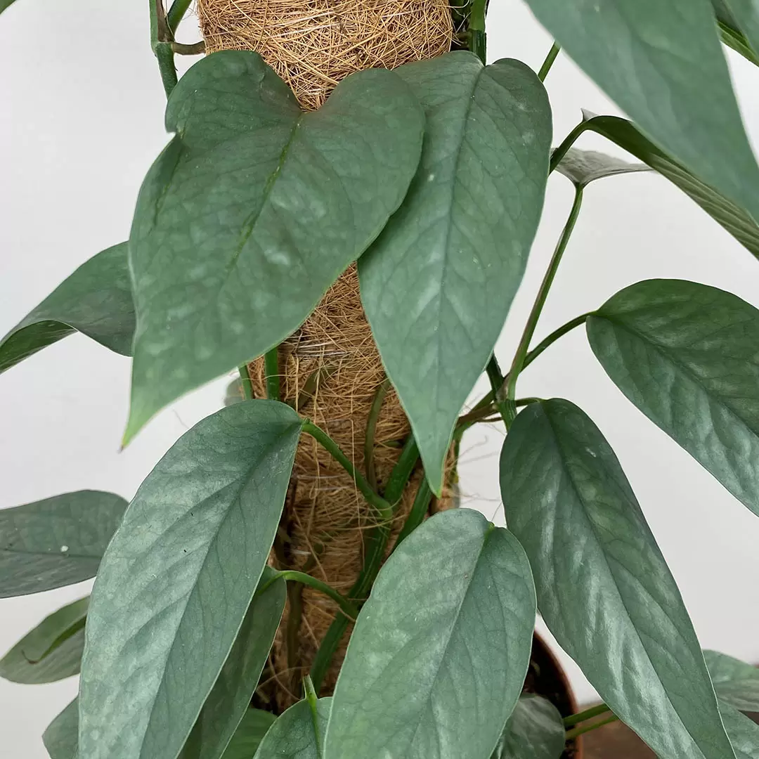 Epipremnum 'Cebu Blue' is another collectors dream. With its online presence, limited availability and gorgeous appearance- it's in high demand. Cebu Blue has glossy silver leaves, almost metallic looking, with undertones of green and blue, making it an excellent plant for those after something slightly more unusual. Epipremnum across the board are pretty straightforward regarding their care requirements: Indirect light, moist soil, adequate humidity and summer feeding. It's best when caring for your Cebu Blue to water from the top of the moss pole as this ensures any aerial roots are receiving enough moisture and increases humidity whilst still watering the soil.