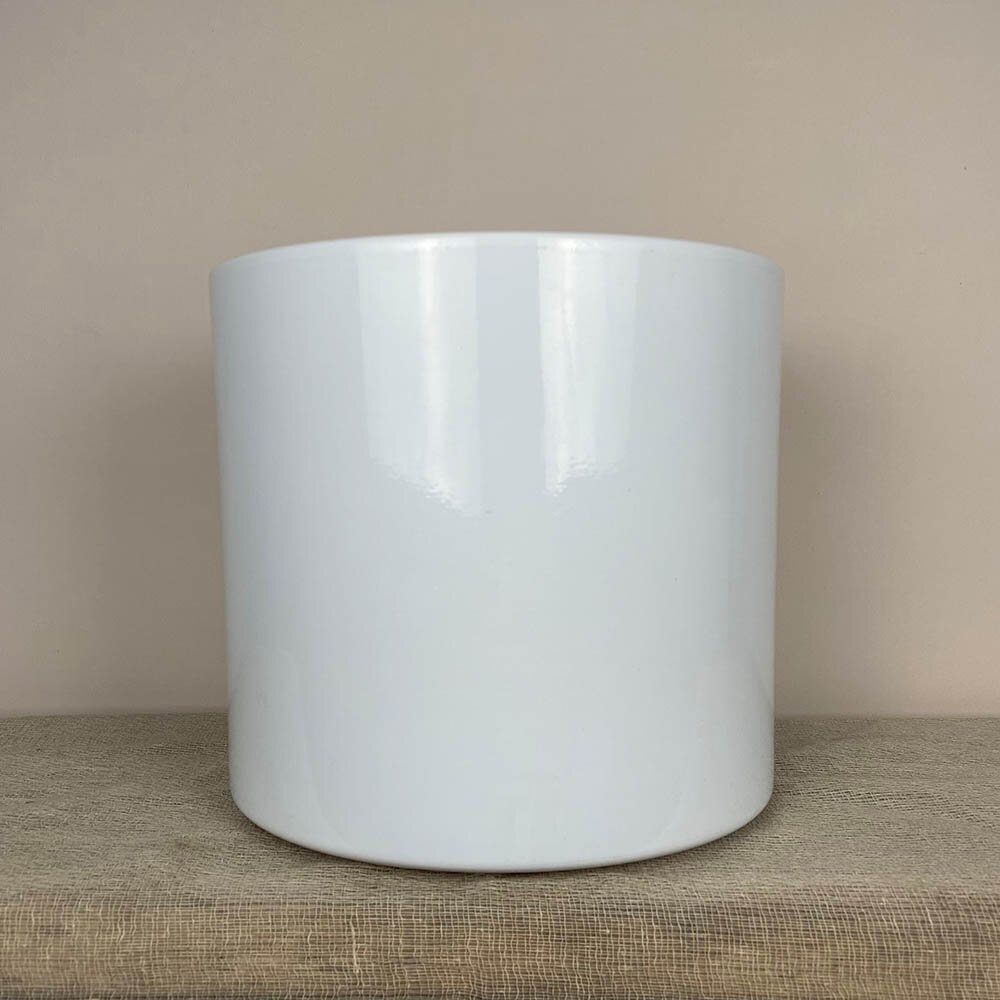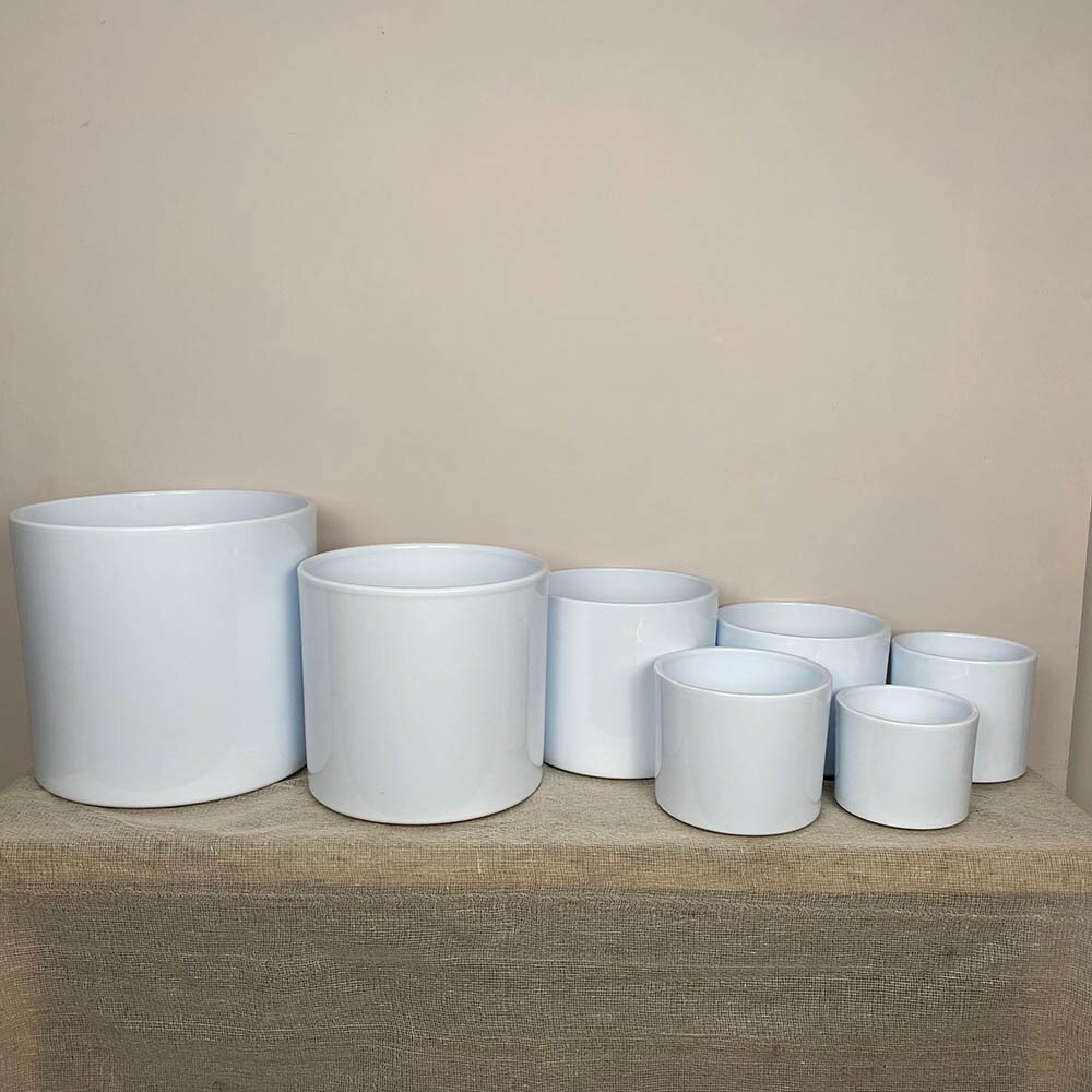 Etta white glaze is part of a contemporary indoor plant pot cover series with a modern design. The series is robust while limiting scuffing and comes without a drainage hole to prevent water seepage. Available in several sizes.