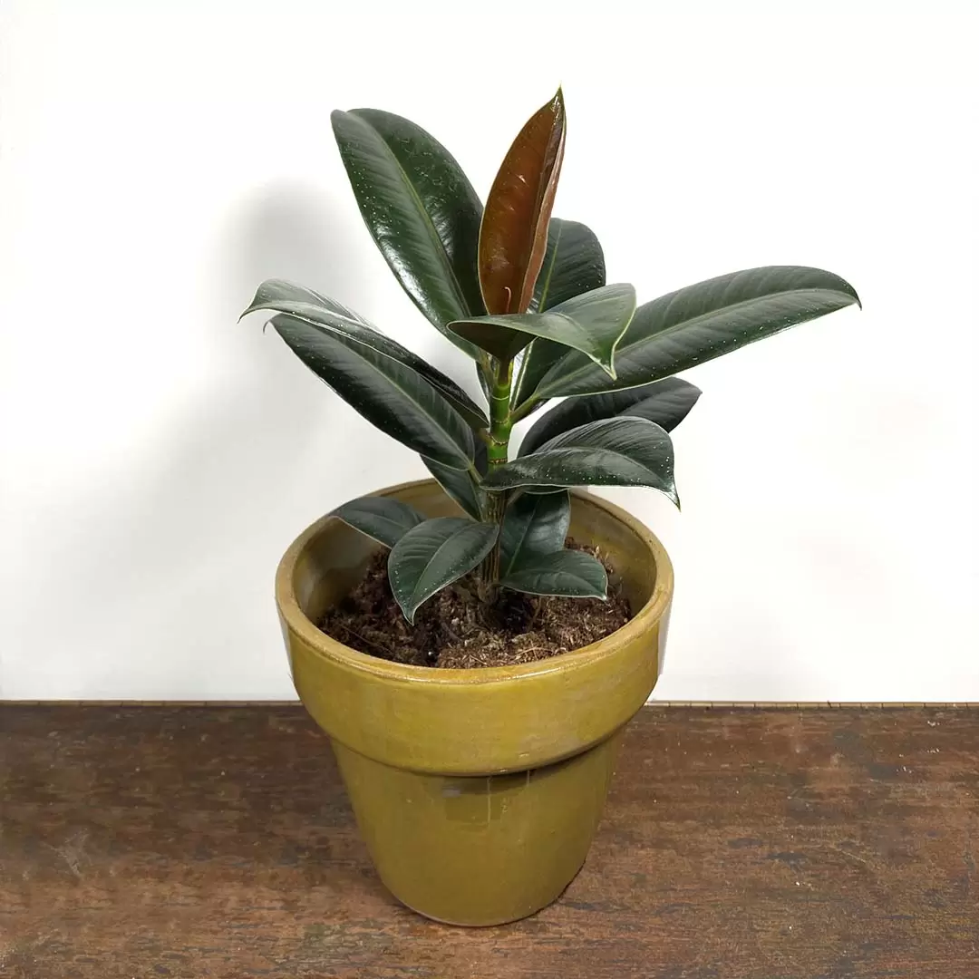 The rubber plant is a fantastic houseplant that doesn't require too much attention- occasionally rotate your plant for even growth all around (if more light is on one side) and wipe the leaves clean of dust for a healthy, happy Ficus.