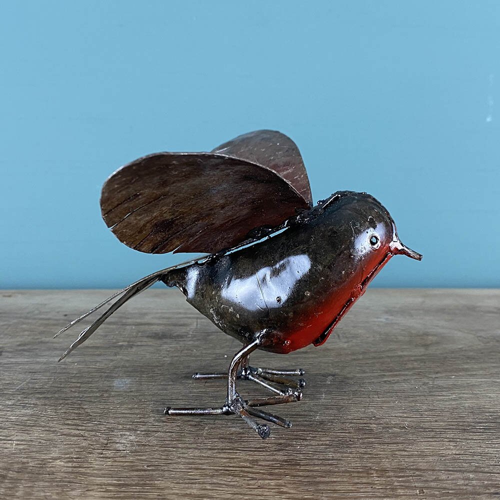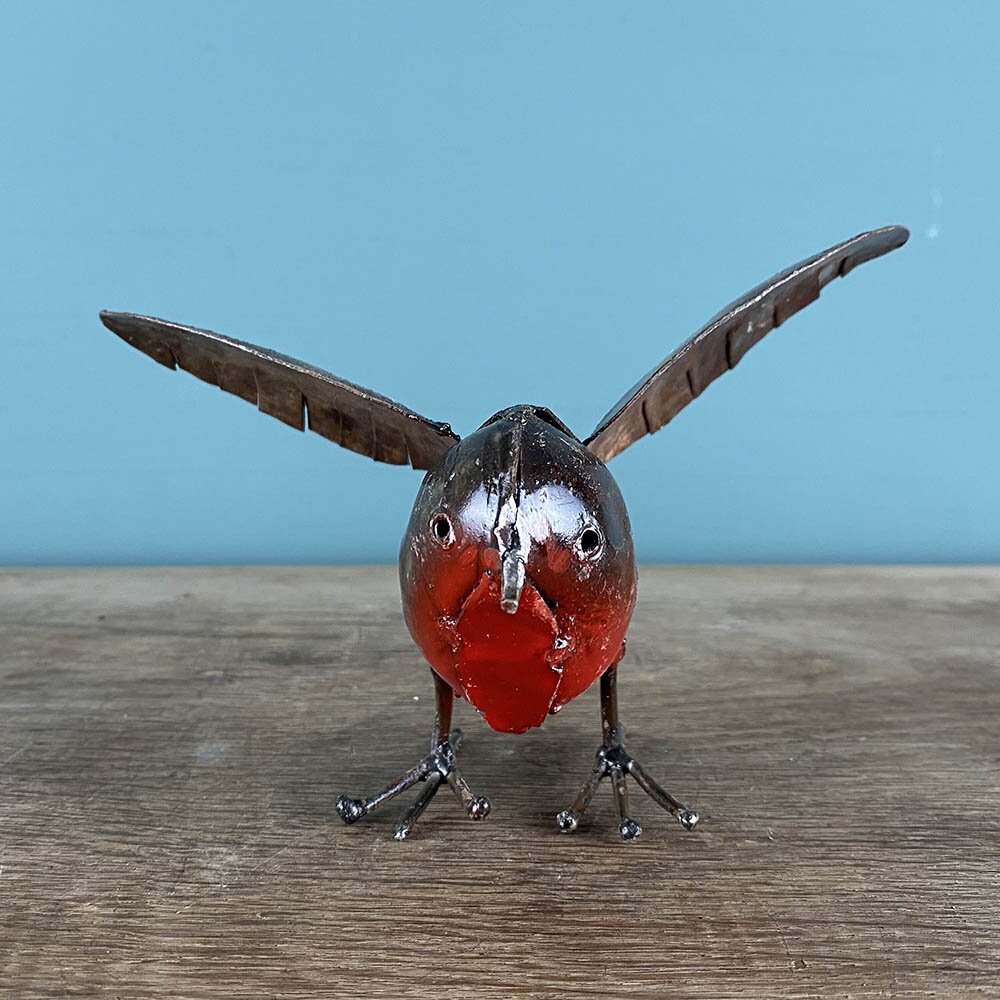 Lovingly handmade, this charming little painted Robin appears to be taking flight. A charming addition to the garden, each one is unique having been made from scraps of recycled oil drums. Supporting Fair Trade in Zimbabwe. Makes a perfect gift for any occasion.