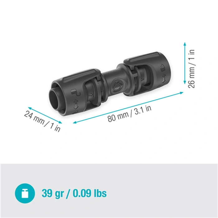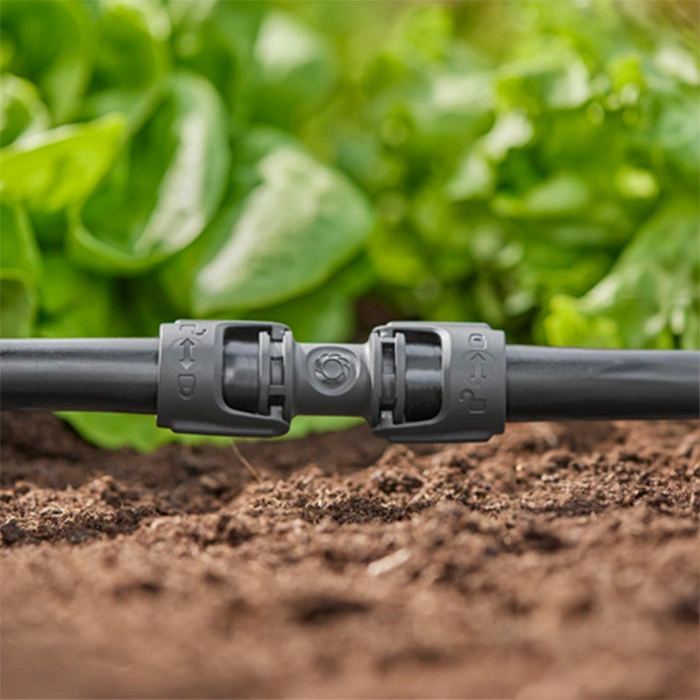 To use it, insert the end of your connecting pipe or drip irrigation line into the connector. Push until you hear the feedback click, indicating a secure and reliable connection. These connectors allow for the flexible extension of your micro-drip system, enabling you to tailor your garden's irrigation to your exact requirements. For disconnection or repositioning, the Quick & Easy technology ensures adjustments can be made effortlessly without compromising the system's integrity.
