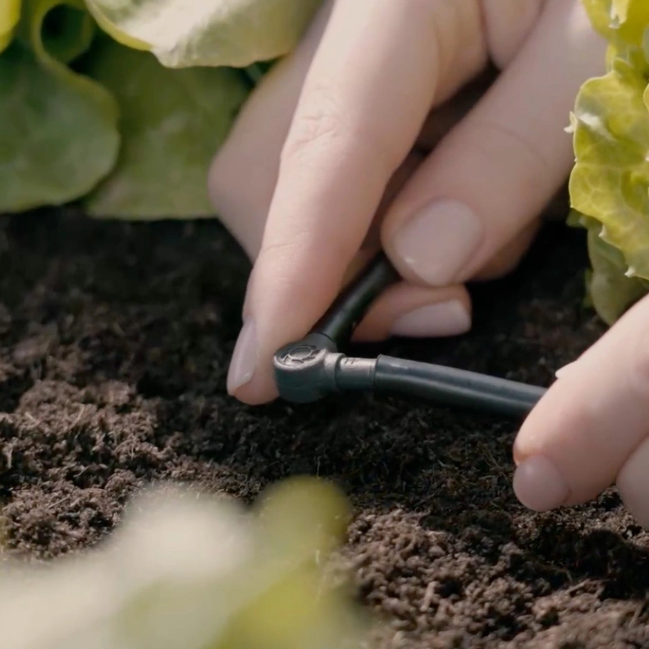 Utilize the Gardena L-Joint 4.6mm (3/16") to direct your garden's irrigation pipes exactly where needed effortlessly. Ideal for navigating corners or circumventing obstacles, simply insert the supply pipe or drip line into the L-Joint to achieve a perfect 90-degree turn. This capability is particularly useful for creating a tailored irrigation system that can efficiently water all areas of your garden, including potted plants, without causing any damage to the pipes. The installation process is quick and requires no tools, making it simple to modify your setup as your garden grows.