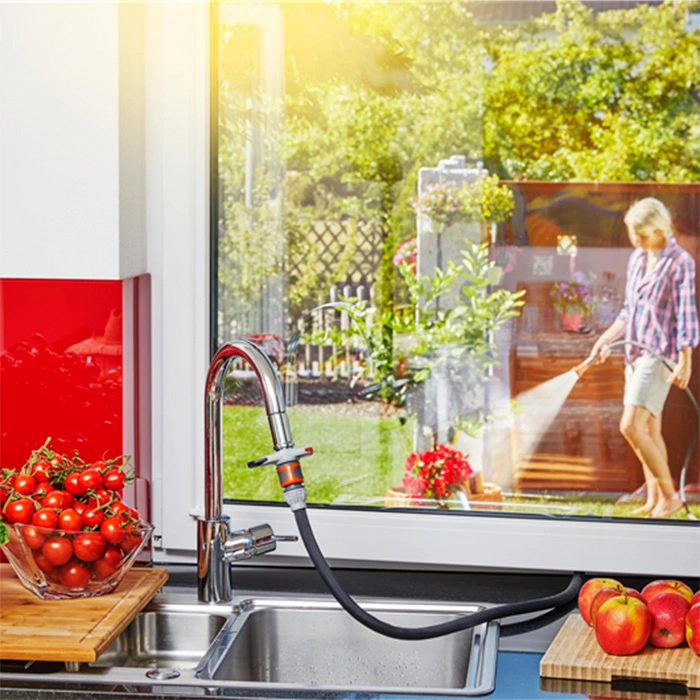 Installation is straightforward and requires minimal effort. With the spanner provided, you can quickly attach the thread adapter to your kitchen or bathroom tap. The connector then slides on effortlessly, with an intuitive slider mechanism ensuring a secure lock. This system not only guarantees a stable and watertight hose connection but also allows for the attachment of various devices, thanks to the compatibility with the Original GARDENA System.