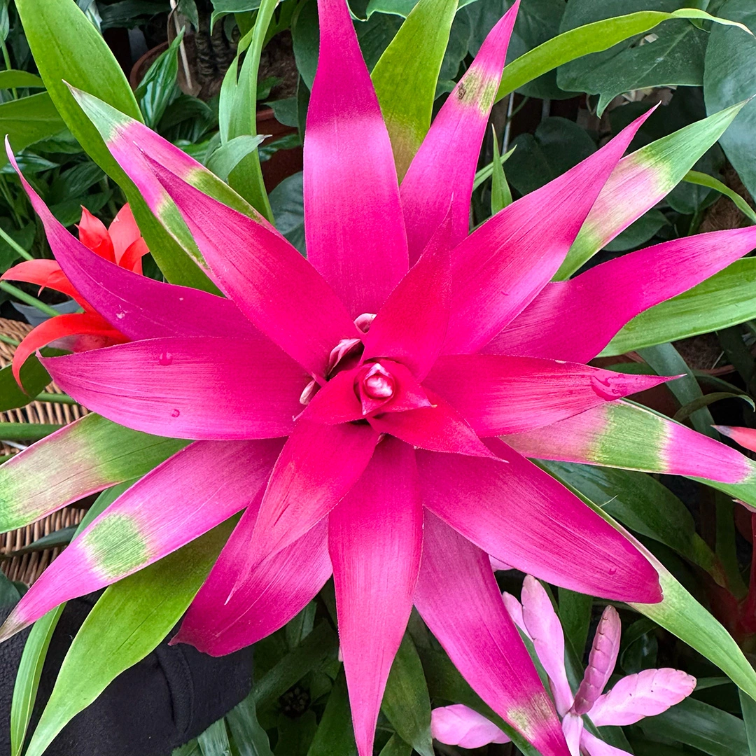 Complementary plants that pair well with the Guzmania 'Cupcake' include ferns and peace lilies, which together create a diverse greenery ensemble enhancing any interior decor. This plant is known for its air-purifying properties, contributing to a healthier living environment. The Guzmania 'Cupcake' primarily showcases its beauty through foliage and striking bracts rather than traditional flowers.