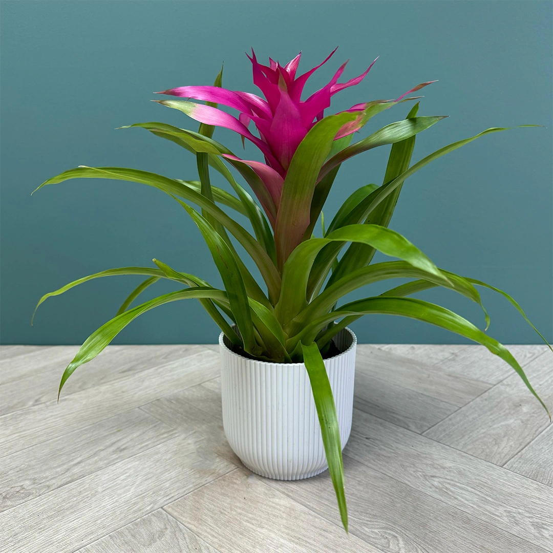 The Guzmania 'Cupcake' is a striking addition to any indoor space, bringing a splash of tropical vibrancy with its array of colours including Orange, Pink, Yellow, and Purple. This bromeliad is not only admired for its aesthetic beauty but also for its easy-care nature, making it a perfect choice for both seasoned plant enthusiasts and beginners. The 'Cupcake' variety can transform your home or office by adding a touch of exotic flair. Ideal locations for this plant include well-lit bathrooms, kitchens, or living rooms, where its colourful bracts can create a focal point.