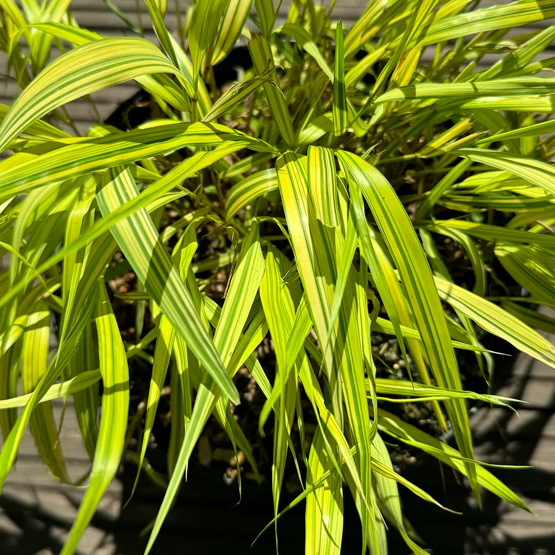 Introducing the Hakonechloa macra 'Aureola', commonly known as Japanese Forest Grass, a stunning addition to any UK garden. This perennial grass is celebrated for its beautiful golden-yellow variegated leaves with subtle green stripes, creating a vibrant display that brings a touch of elegance to any garden. With its graceful, arching growth habit, 'Aureola' is perfect for shady spots, borders, and containers, adding texture and colour throughout the year. Its cascading foliage pairs wonderfully with hostas, ferns, and heucheras, creating a lush and layered effect in woodland gardens or shaded areas. Enhance your garden with the timeless beauty and easy-care nature of Hakonechloa macra 'Aureola'.