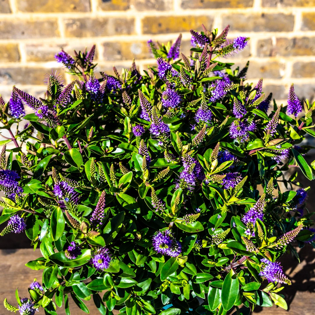 Hebe Addenda ‘Donna Anna’ is a striking evergreen shrub that boasts vibrant purple flowers from July through to the first frosts, bringing a long-lasting burst of color to your garden. Its glossy, dark green leaves provide year-round interest, and the shrub’s compact, bushy habit makes it perfect for garden borders, patio pots, or rock gardens. Growing to an ultimate height and spread of 100 cm by 100 cm, ‘Donna Anna’ is well-suited to small and medium gardens.