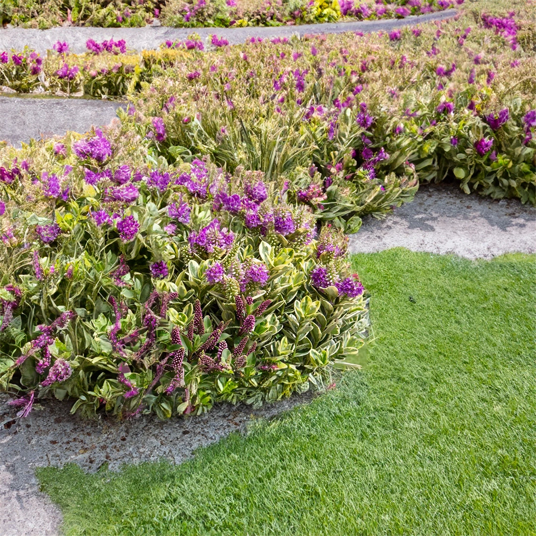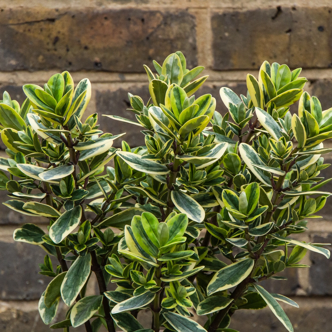 Hebe 'Golden Katrina' is a vibrant, evergreen shrub that will brighten your garden all year round. It boasts dark grey-green leaves with striking pale yellow margins that provide a stunning contrast to its dense racemes of purple flowers. This spectacular floral display adorns the plant from June to July. Hebe 'Golden Katrina' is a hardy plant that not only brings colour to your outdoor space but also attracts beneficial wildlife, such as bees and butterflies. Its compact habit makes it an excellent choice for any garden, large or small, and is particularly eye-catching in containers, borders, or as a low-growing hedge. Pair it with dark-leaved shrubs or plants with rich, purple flowers, for a visually dynamic combination.