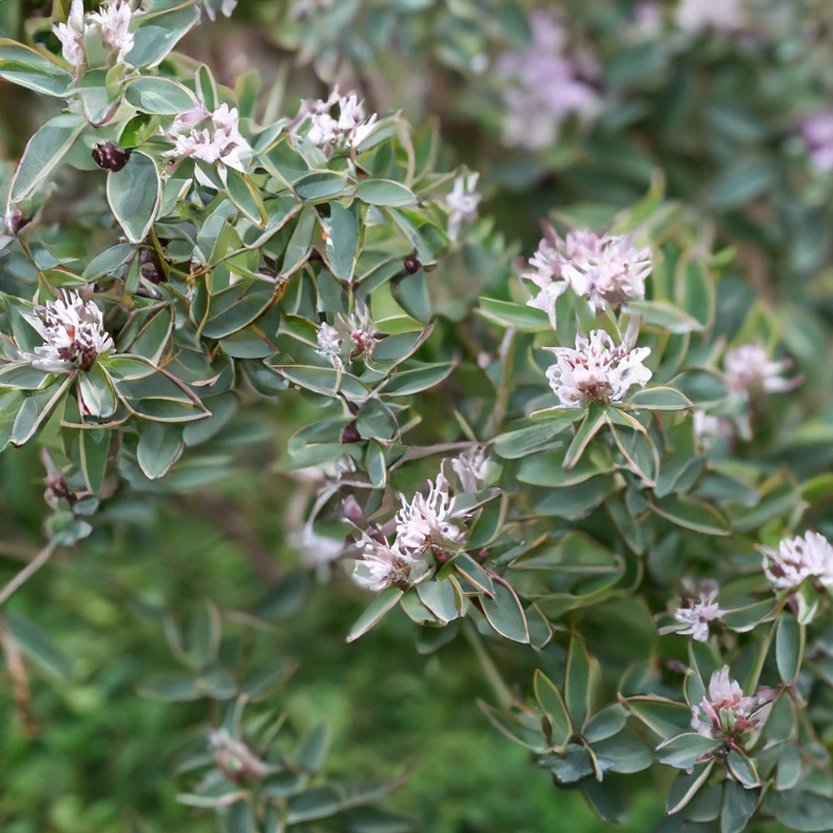 Hebe 'Pink Lady' is an attractive, small, and compact evergreen shrub, ideal for adding structure and colour to gardens with its modest height of 20 inches (50 cm). It features distinctive grey-green, spear-shaped leaves, each measuring 0.8 inches (2 cm) in length and 0.3 inches (7 mm) in width, creating a lush backdrop for its floral display. In spring and early summer, 'Pink Lady' is adorned with spikes of delicate pale pink flowers that gracefully fade to white, enhancing its appeal. Despite its exotic appearance, this hebe cultivar is remarkably hardy, capable of withstanding temperatures down to -5°C. It has a notably long flowering period, adding extended interest and vibrancy to planting schemes. 'Pink Lady' is a recently introduced variety of unknown origin that has quickly become favoured for its versatility and beauty. In the UK, it grows well in most soil types, provided it is placed in a sunny position, making it a versatile choice for gardeners looking to inject long-lasting colour into their outdoor spaces.