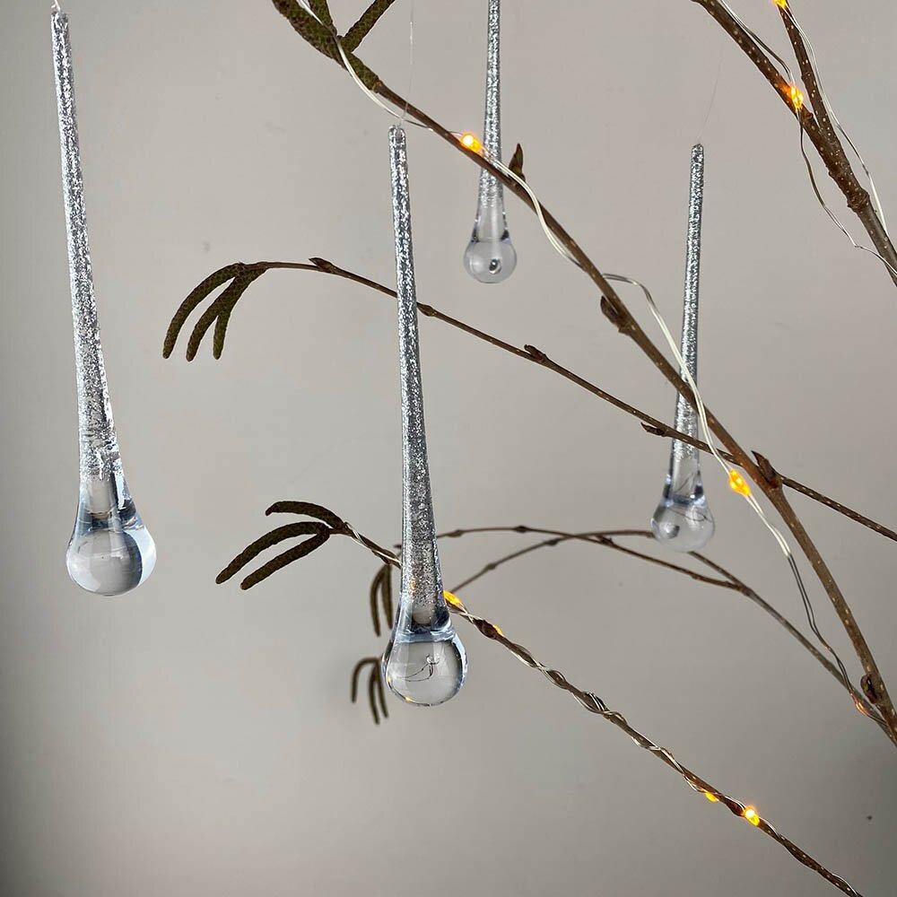 Reminiscent of hanging icicles on a freezing cold day after snow fall. Elegant hanging tree decorations that will glow against the dark green tree foliage
