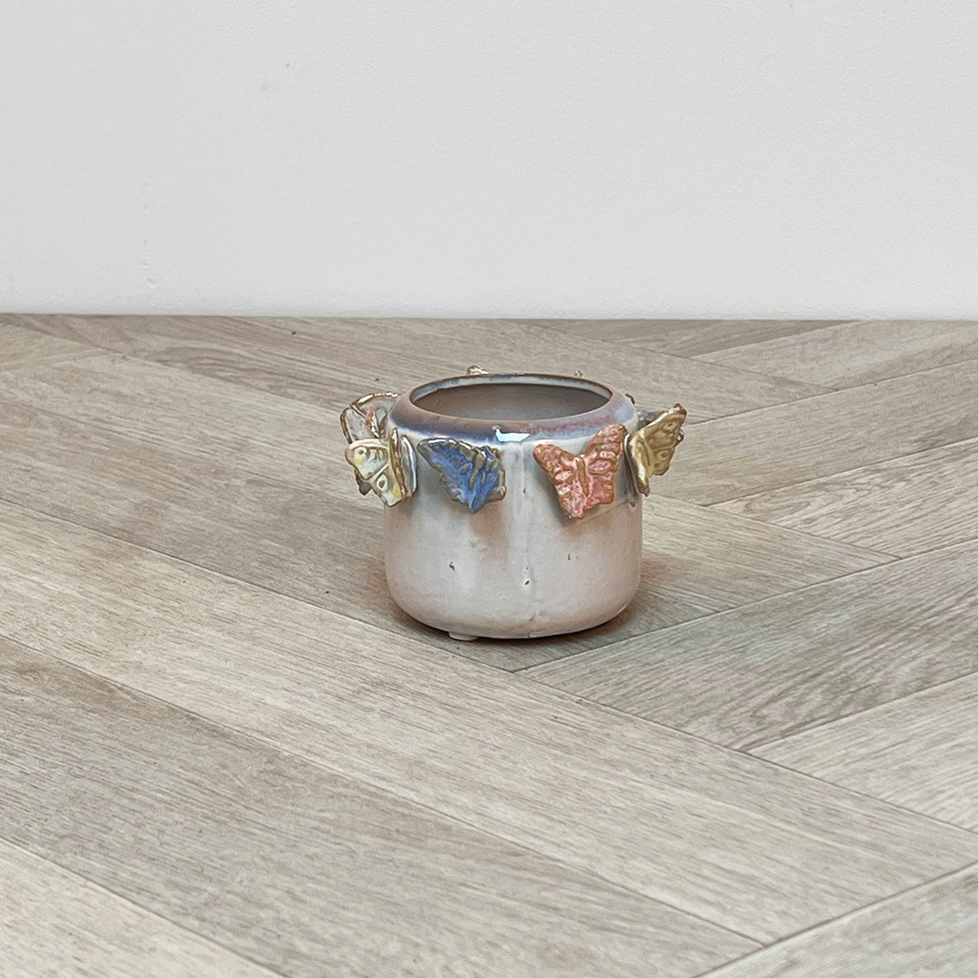 Introducing our exquisite handmade ceramic plant pot, a true masterpiece crafted with utmost care and attention to detail. This plant pot is a perfect fusion of artistry and functionality, adorned with ornate relief butterfly decorations that add a touch of elegance and charm to any space.
