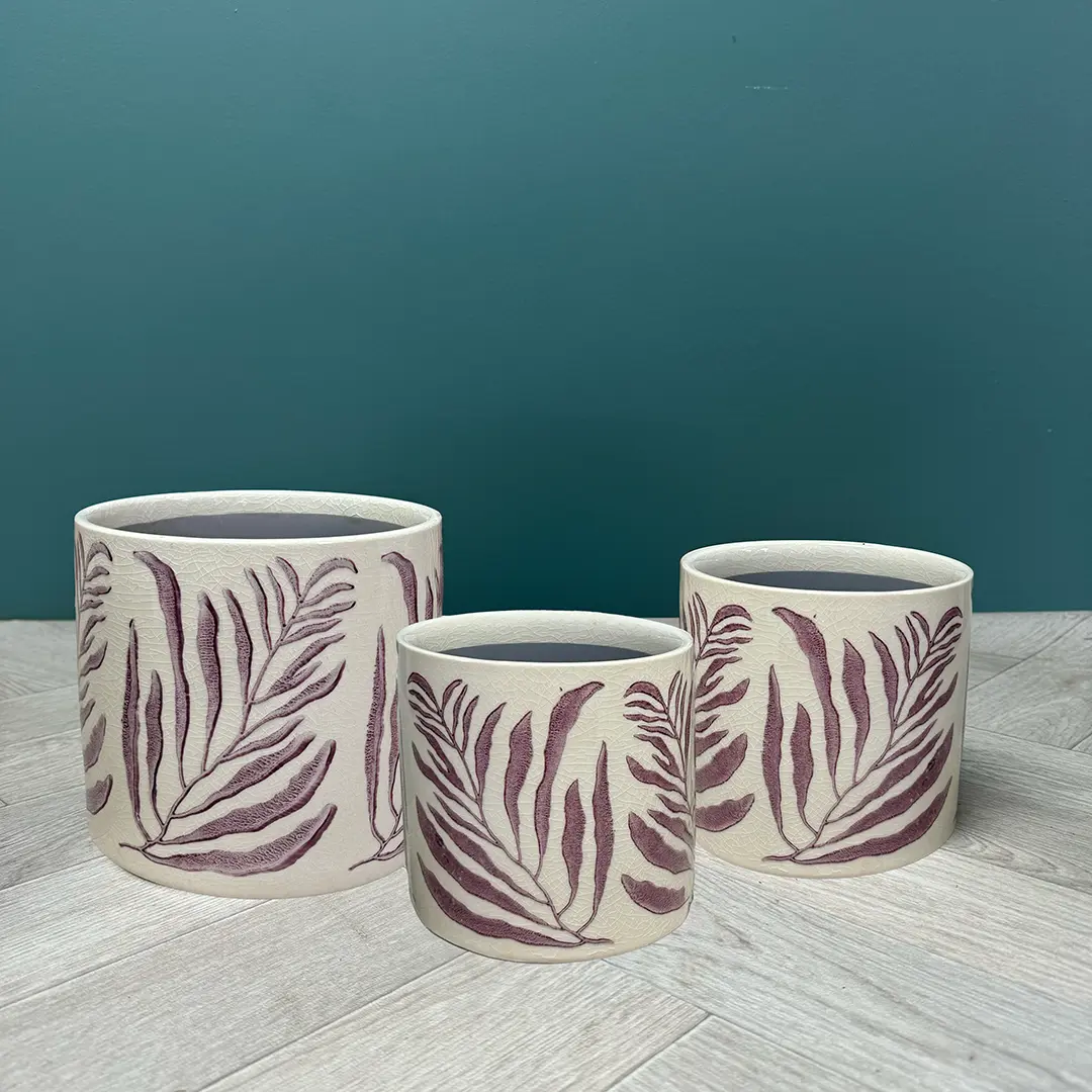 Elevate your home’s ambience with the Mauve Branch Pot, a beautifully designed ceramic plant pot that combines classic elegance with contemporary styling. This pot features a cream-white background with a crazed glaze finish, providing a sophisticated backdrop for the vividly coloured mauve branch designs that adorn its surface. Available in green, blue, and mauve variations, these branches are detailed with leaves that bring a touch of nature indoors.