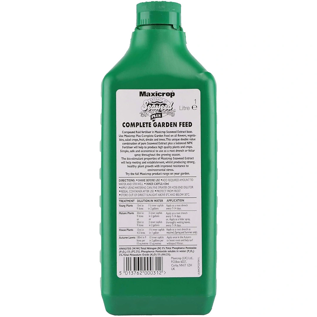 Buy Maxicrop Complete Garden Feed, Seaweed Plus Complete Garden Feed, 1L, Concentrate at The Boma Garden Centre in Kentish Town, London. Visit our garden centre in London and check our wide range of plants & gardening products. We also offer many other Maxicrop products in our webshop. We look forward to seeing you soon!