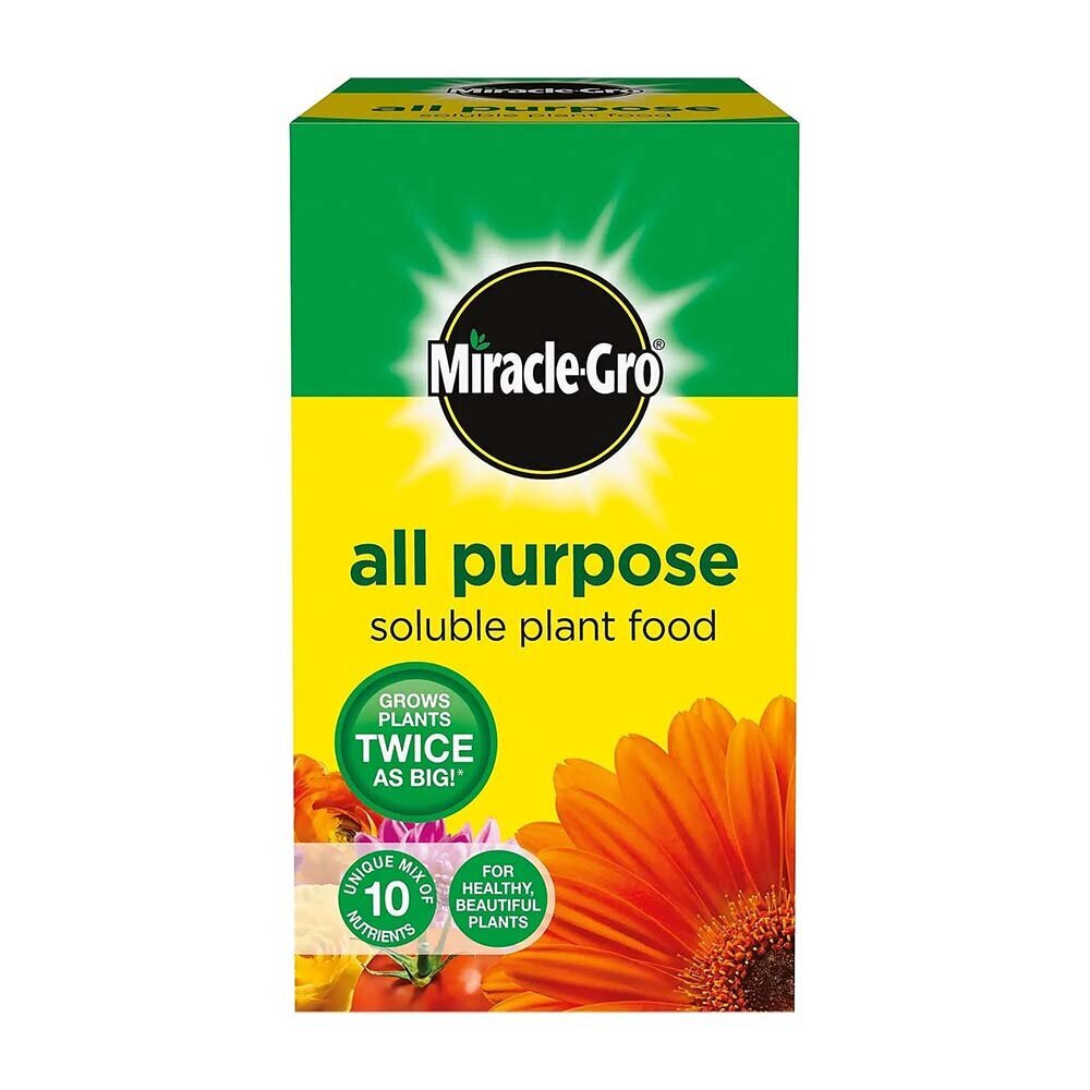 Miracle-Gro All Purpose Soluble Plant Food is a unique mix of 10 micronutrients to ensure healthy growth. For stunning displays, feed every two weeks from March to September. This product is easy to apply using the Miracle-Gro Feeder or with a watering can. Contains a unique mix of 10 nutrients, carefully balanced to provide plants with essential nutrients required for optimum growth and flowering. Ideal for all plants indoors, in pots, containers, hanging baskets, beds, borders or the lawn. For stunning displays, feed every 2 weeks from March to September.