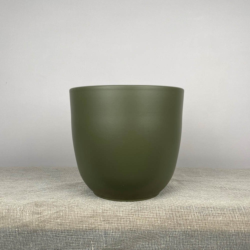 Olivia is a contemporary indoor plant pot cover series with a modern, sleek design in a shade of matt olive green ceramic. Olivia is robust in limiting scuffing and comes without a drainage hole to prevent water seepage. Available in several sizes and an indoor hanging pot.