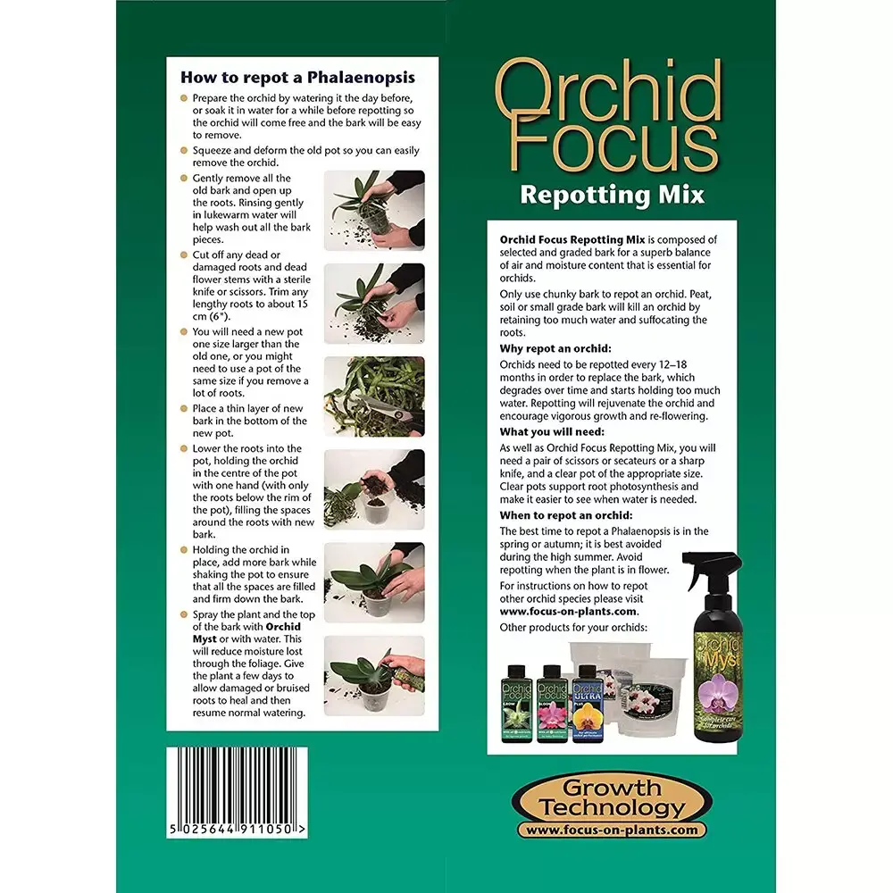 Orchid Focus Repotting Mix is composed of specially selected and graded bark for a superb balance of air and moisture content that is essential for orchids.