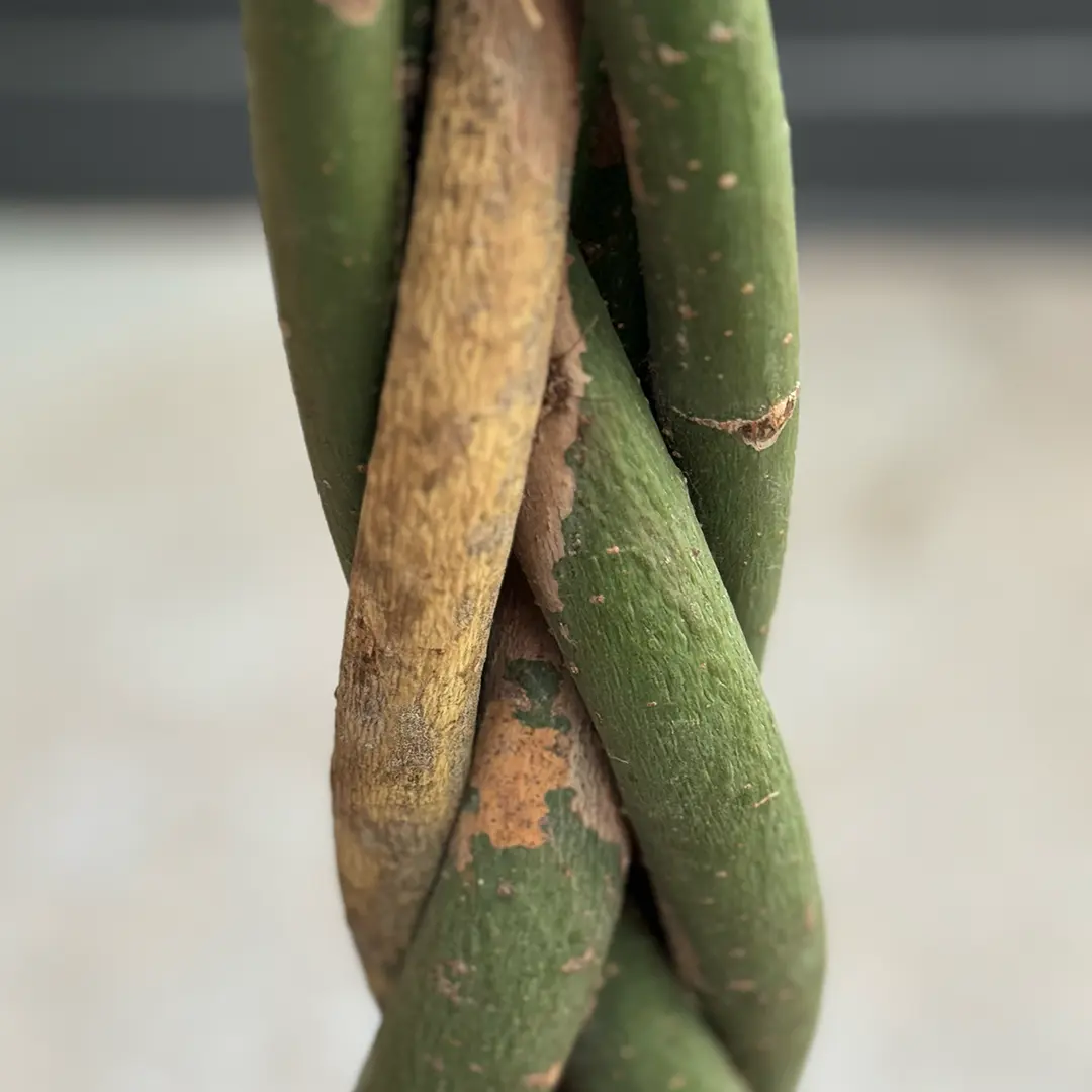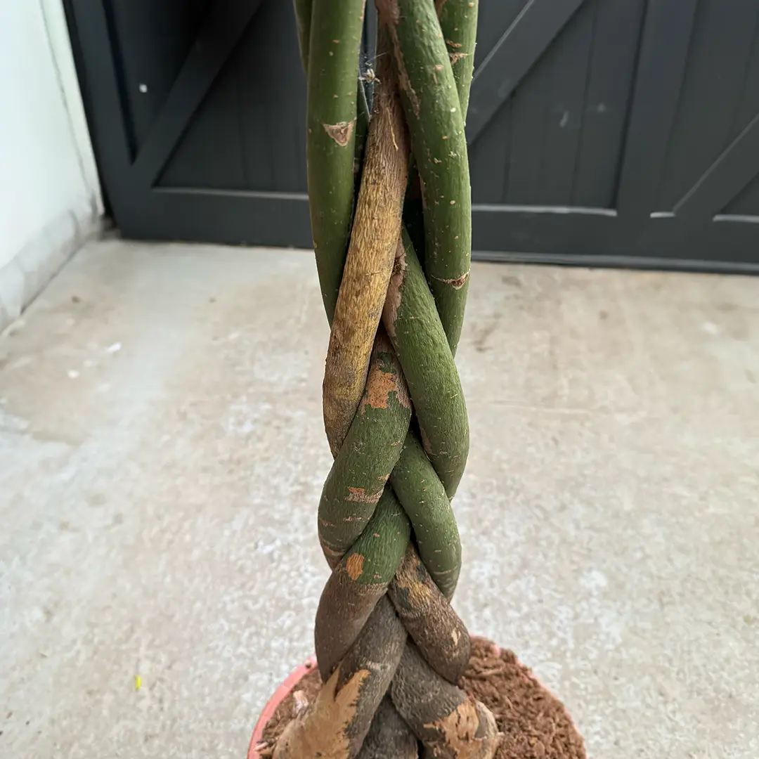 Native to Central and South America, Money Trees are appreciated for their lush, glossy green leaves which add a vibrant touch of nature to indoor spaces. They are adaptable to a variety of indoor conditions, though they prefer bright, indirect light and humidity. The braiding of the trunks does not affect the plant's health but adds structural beauty and interest.