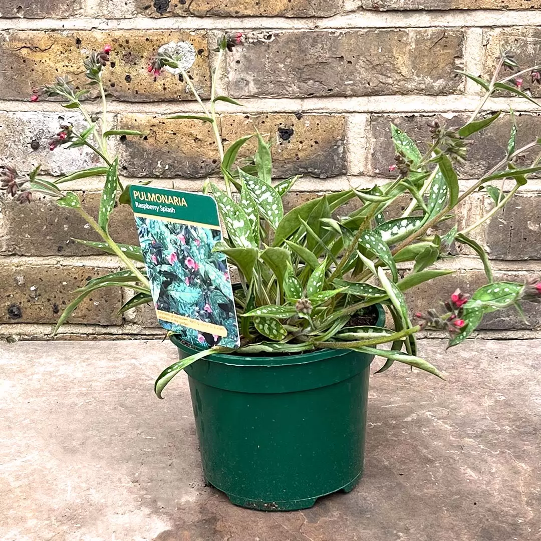 Buy Pulmonaria 'Raspberry Splash' PBR (Pot Size 2L) at The Boma Garden Centre in Kentish Town, London. Visit our garden centre in London and check our wide range of plants & gardening products. We also offer many other products in our webshop. We look forward to seeing you soon!