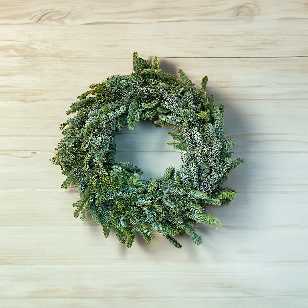 Real pine Christmas wreaths made from fresh pine. Adds a simple festive look to any door or table, for a merry holiday season. You can decorate the wreath with lights, ribbon, dried fruits and ornaments for your special creative touch. Regular mistings will help your pine wreath retain its freshness.