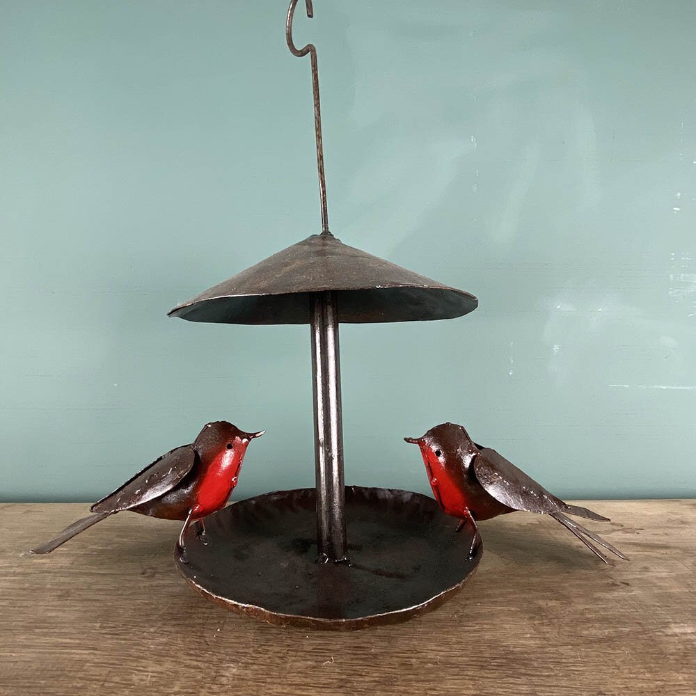 Lovingly handmade, this charming birdfeeder featuring a pair of Robins is perfect for enticing birds to your garden if filled with seeds. Each one is unique, having been made from scraps of recycled oil drums. Supporting Fair Trade in Zimbabwe. Makes a perfect gift for any occasion.