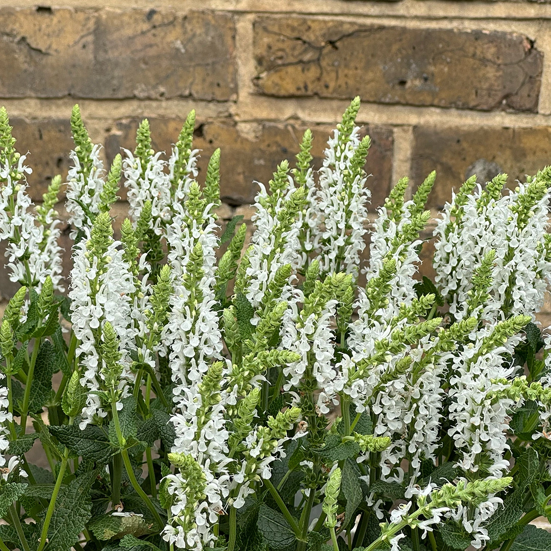 Salvia 'Lyrical White' is a robust and visually striking perennial known for its dense spikes of pure white flowers. Blooming from late spring through to late summer, this plant adds a touch of elegance and brightness to any garden setting. The upright, bushy habit and grey-green foliage provide a lovely contrast to the clean white blooms, making it a standout choice for borders, containers, and cottage gardens. 'Lyrical White' is particularly valued for its ability to attract pollinators, including bees, butterflies, and hummingbirds, enhancing the biodiversity and vibrancy of your garden. This variety is also drought-tolerant and resistant to deer and rabbits, making it both beautiful and resilient.