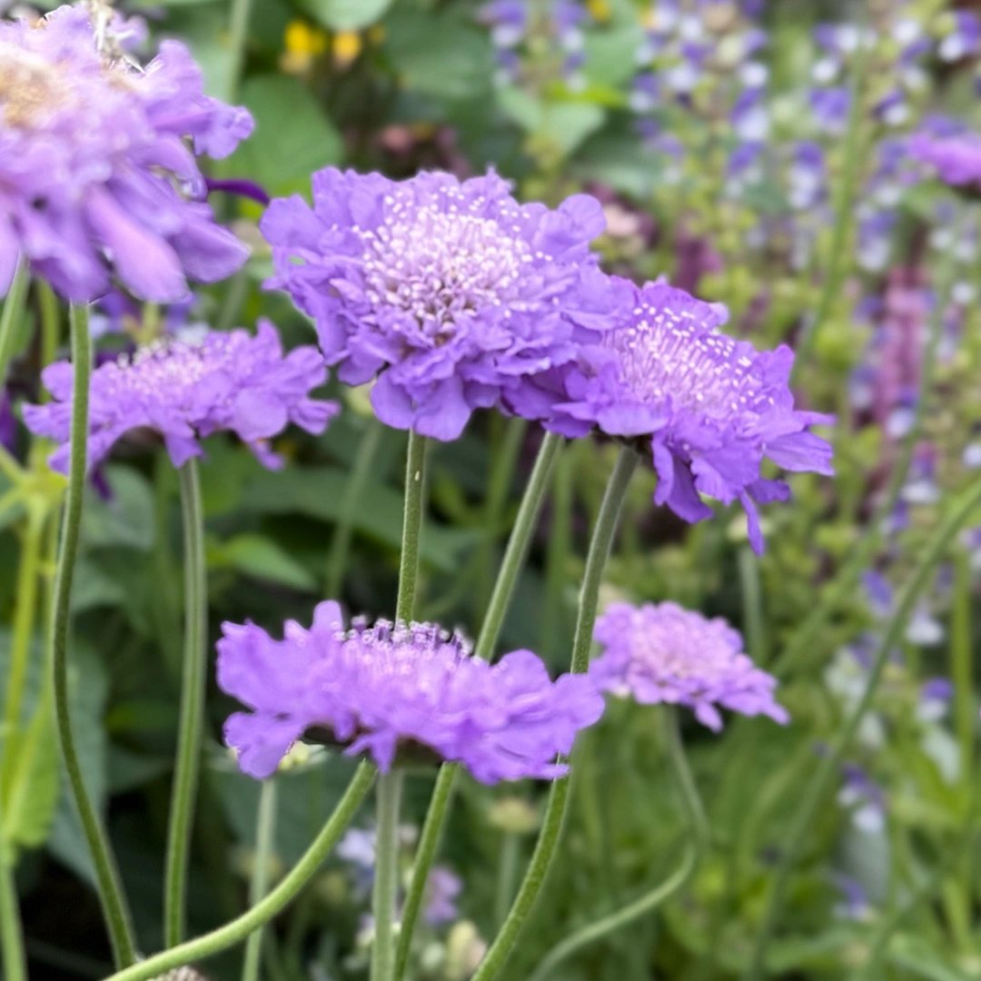 Scabiosa 'Butterfly Blue' is a charming and delicate perennial plant that gardeners love for its stunning blooms and ease of care. This variety of Scabiosa produces masses of vibrant, powder blue, pincushion-like flowers with a unique pincushion-like centre held aloft on long, wiry stems. The flowers are beautiful to butterflies, bees, and other pollinators, making them an excellent choice for wildlife or pollinator gardens.