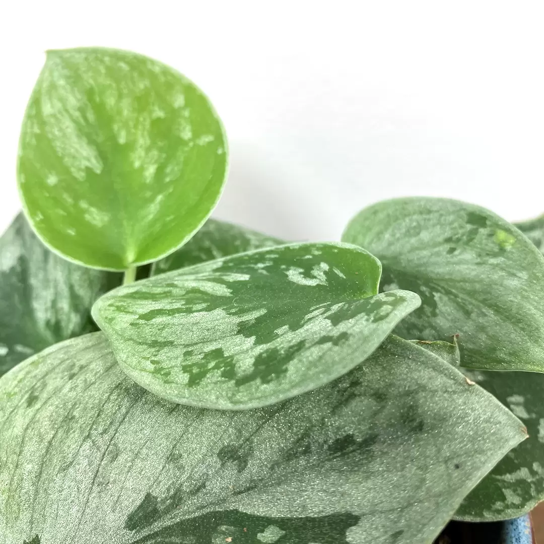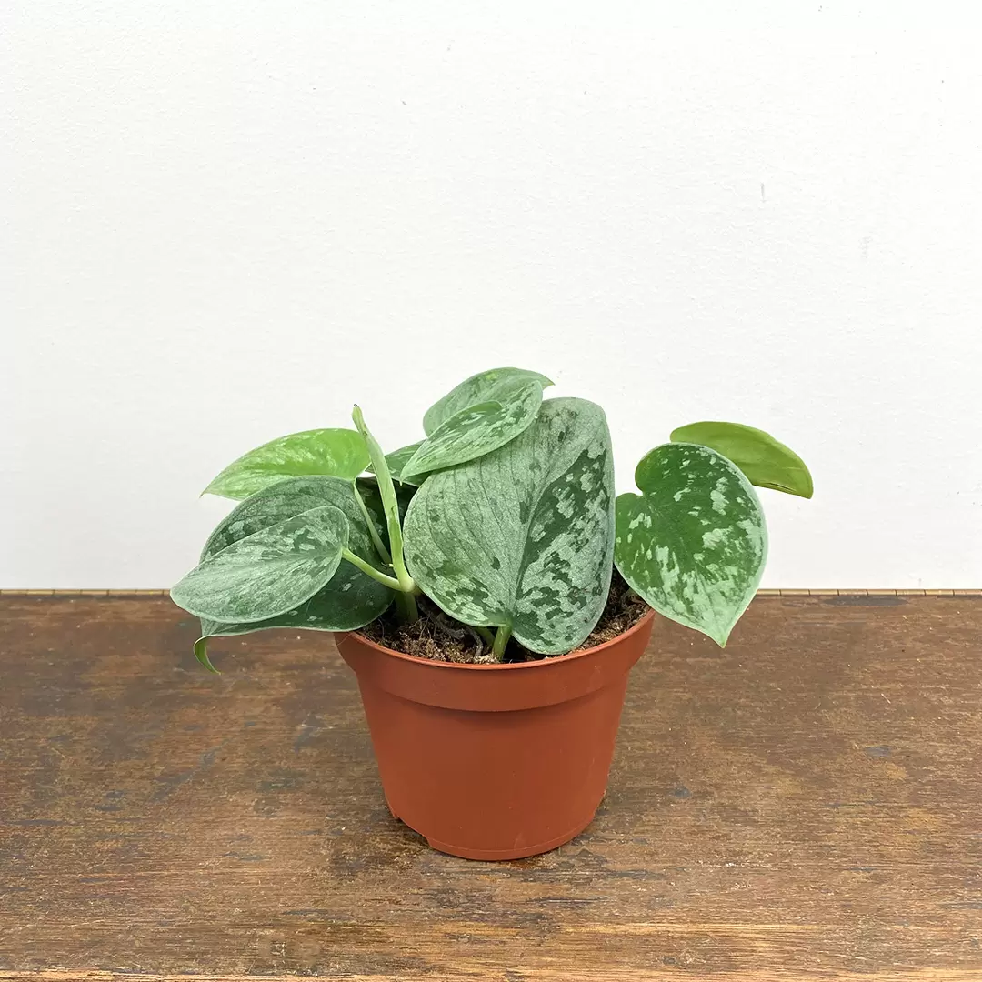 Scindapsus 'Silvery Ann' is a great houseplant, showcasing silvery mottled leaves and a trailing/twining habit. You can train Silvery Ann to grow however you wish- hanging, sprawling or climbing. Their common name (Satin pothos) is fitting and refers to their beautiful silvery/velvety foliage. They require very little care. They are a dream houseplant as long as they get sufficient humidity and warm temperatures. Go sparingly with watering, particularly in winter months as if overwatered. They suffer terribly. Scindapsus, on the whole, are fantastic houseplants due to their low maintenance nature and ability to thrive in shadier spots.