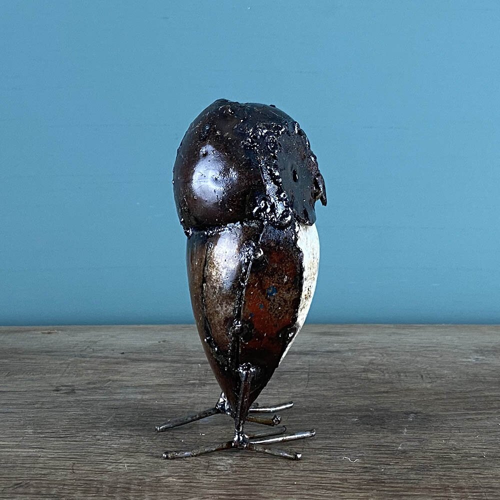 Lovingly handmade, this charming little painted Owl will keep you company in the garden throughout the year. Each one is unique, having been made from scraps of recycled oil drums. Supporting Fair Trade in Zimbabwe. Makes a perfect gift for any occasion.